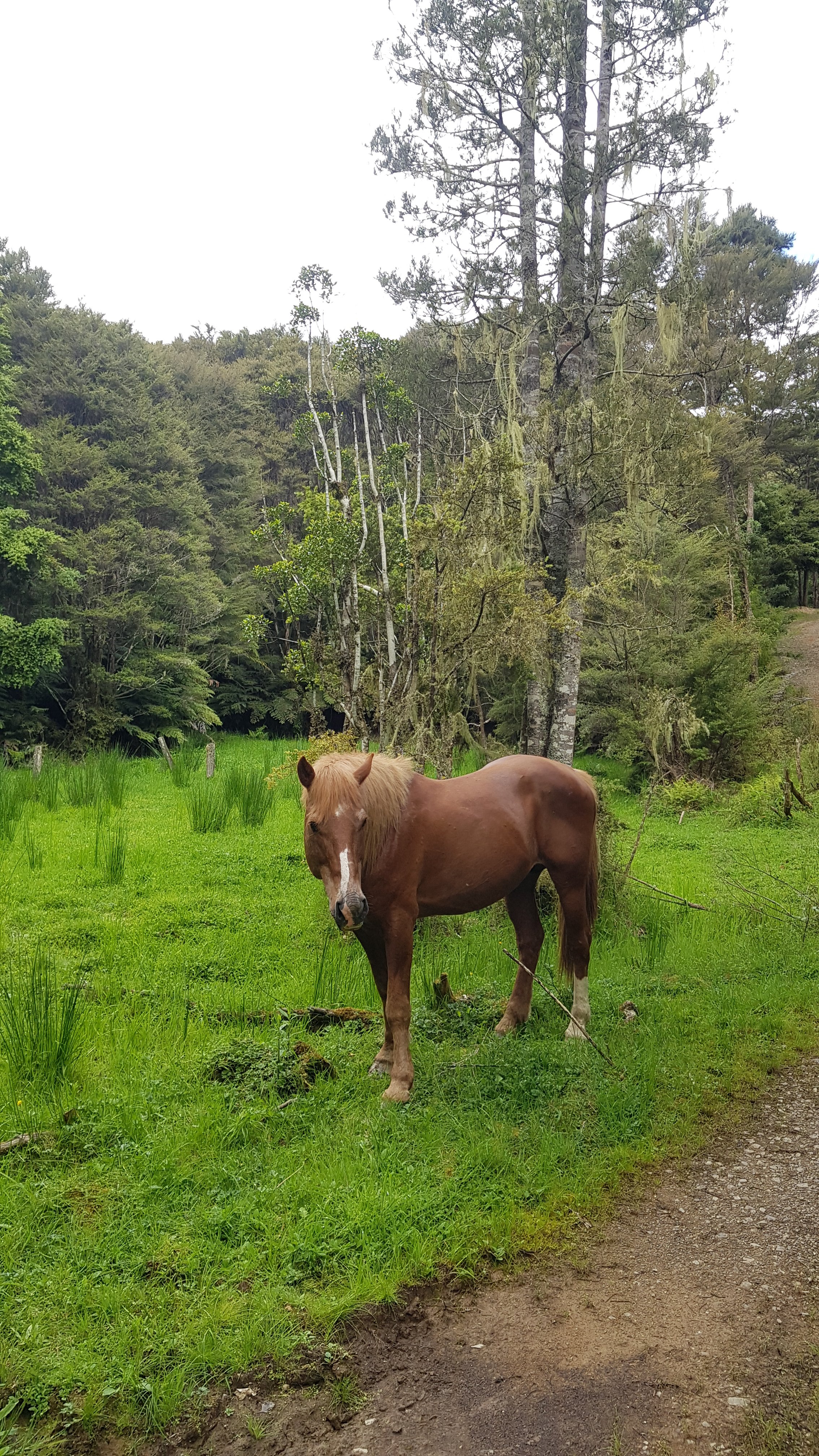 The track started off as a wide road before turning onto a single tramping track. Just before this junction we were met by a wild horse.