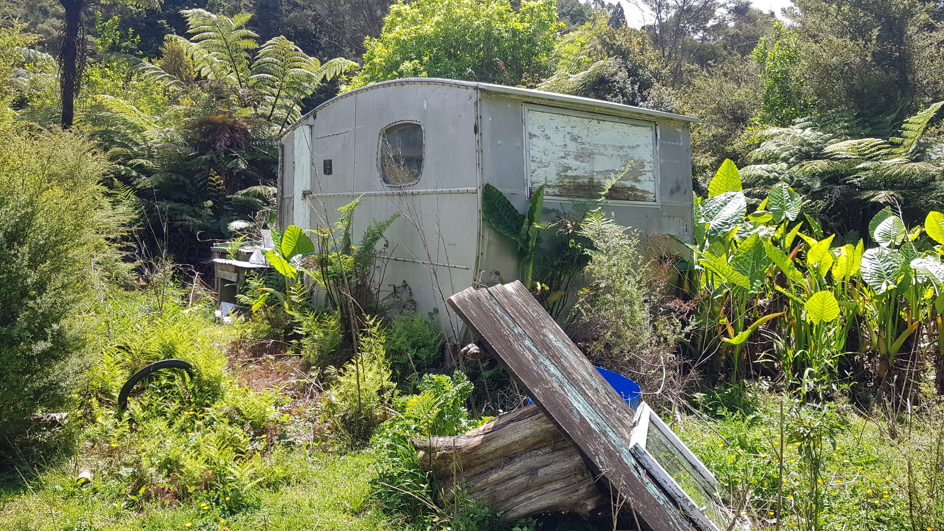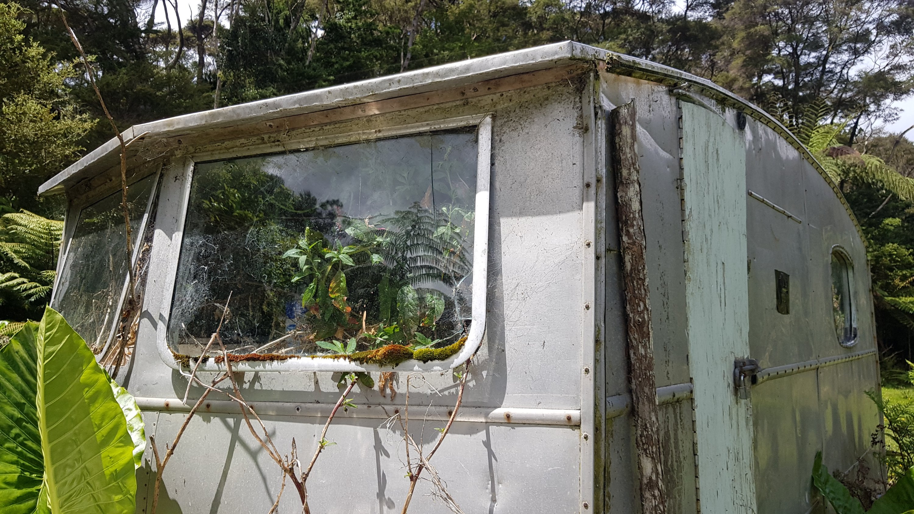 After a short walk the trail opened up into a grassy area with an abandoned caravan and garden.