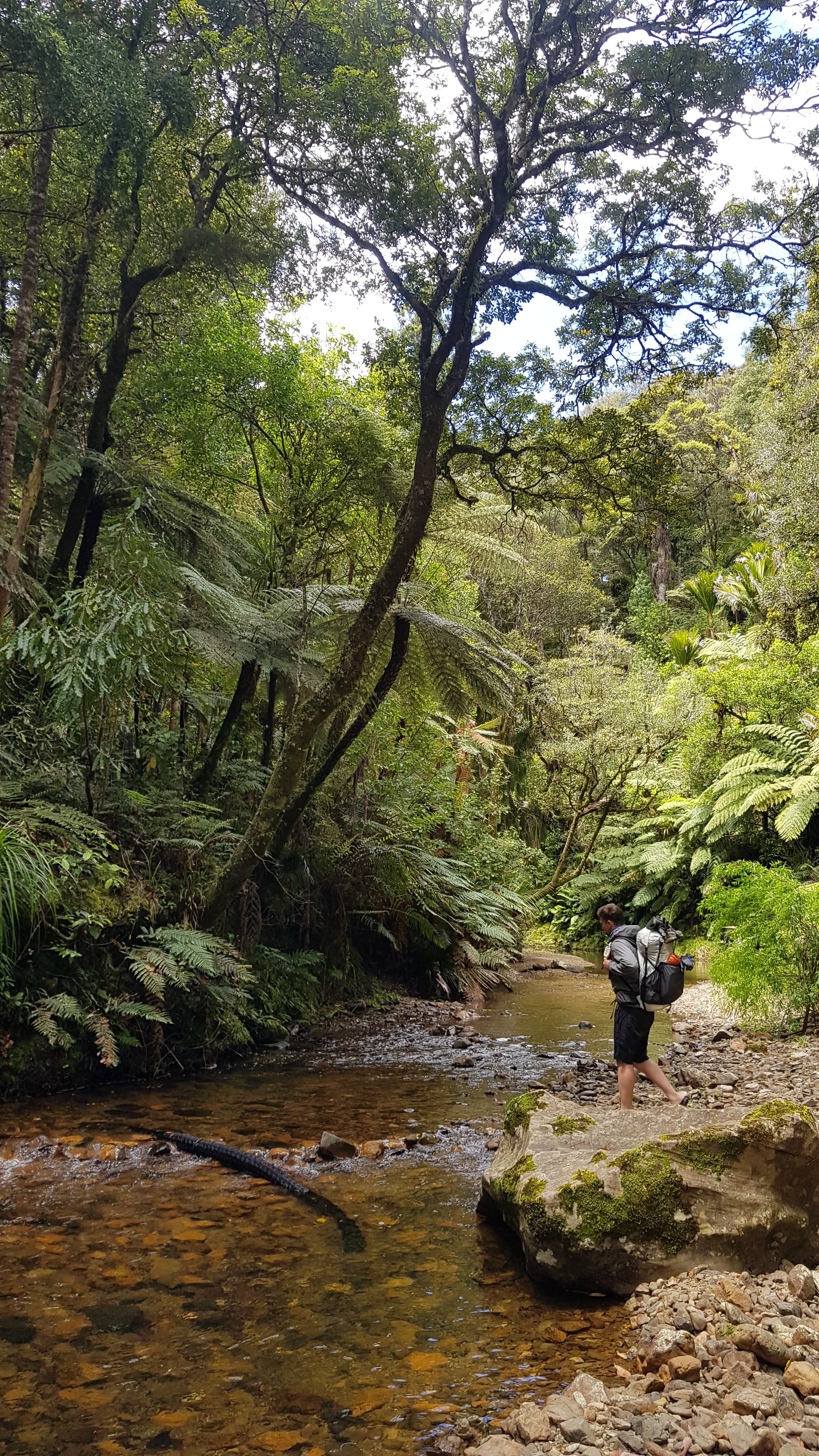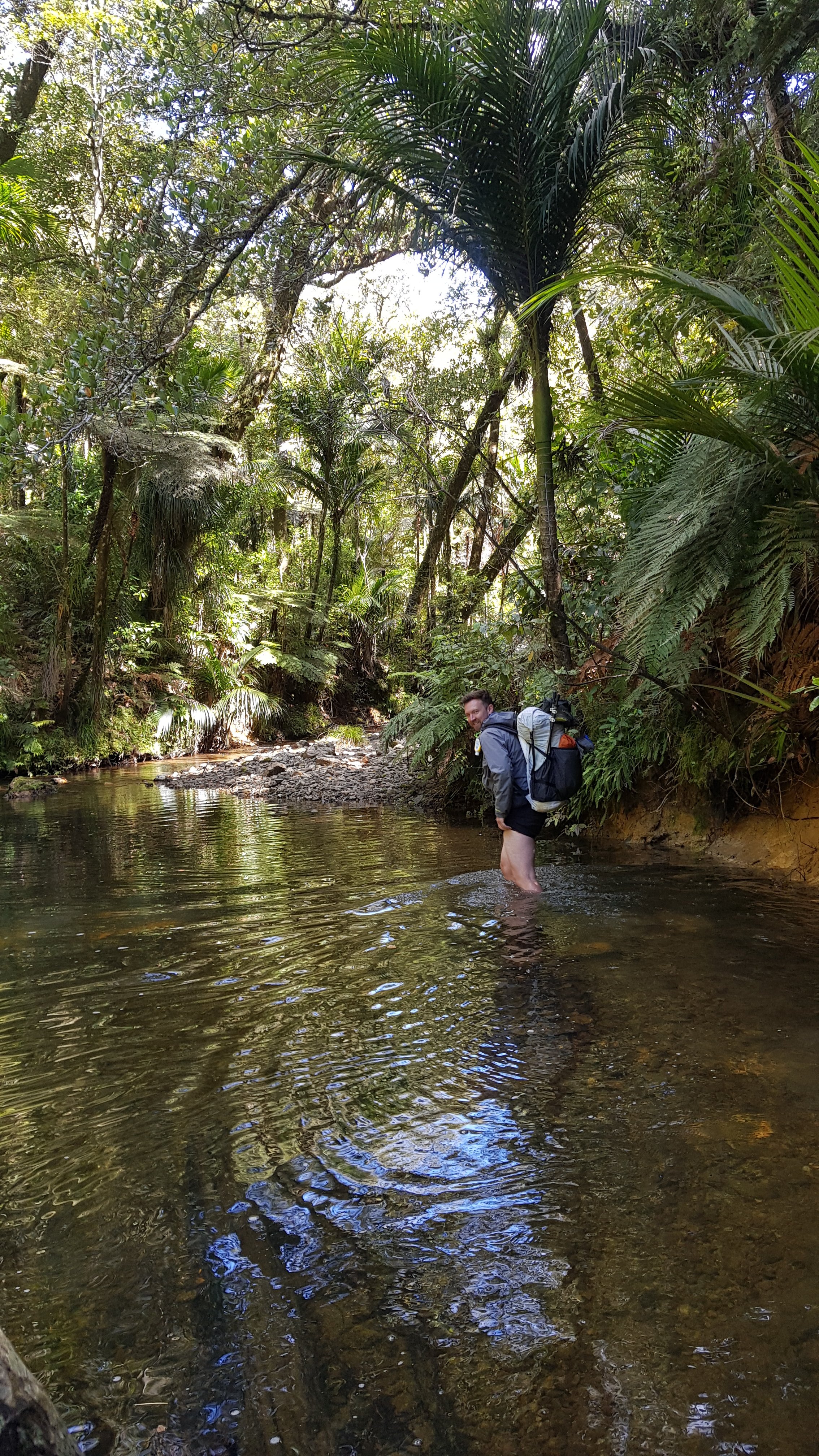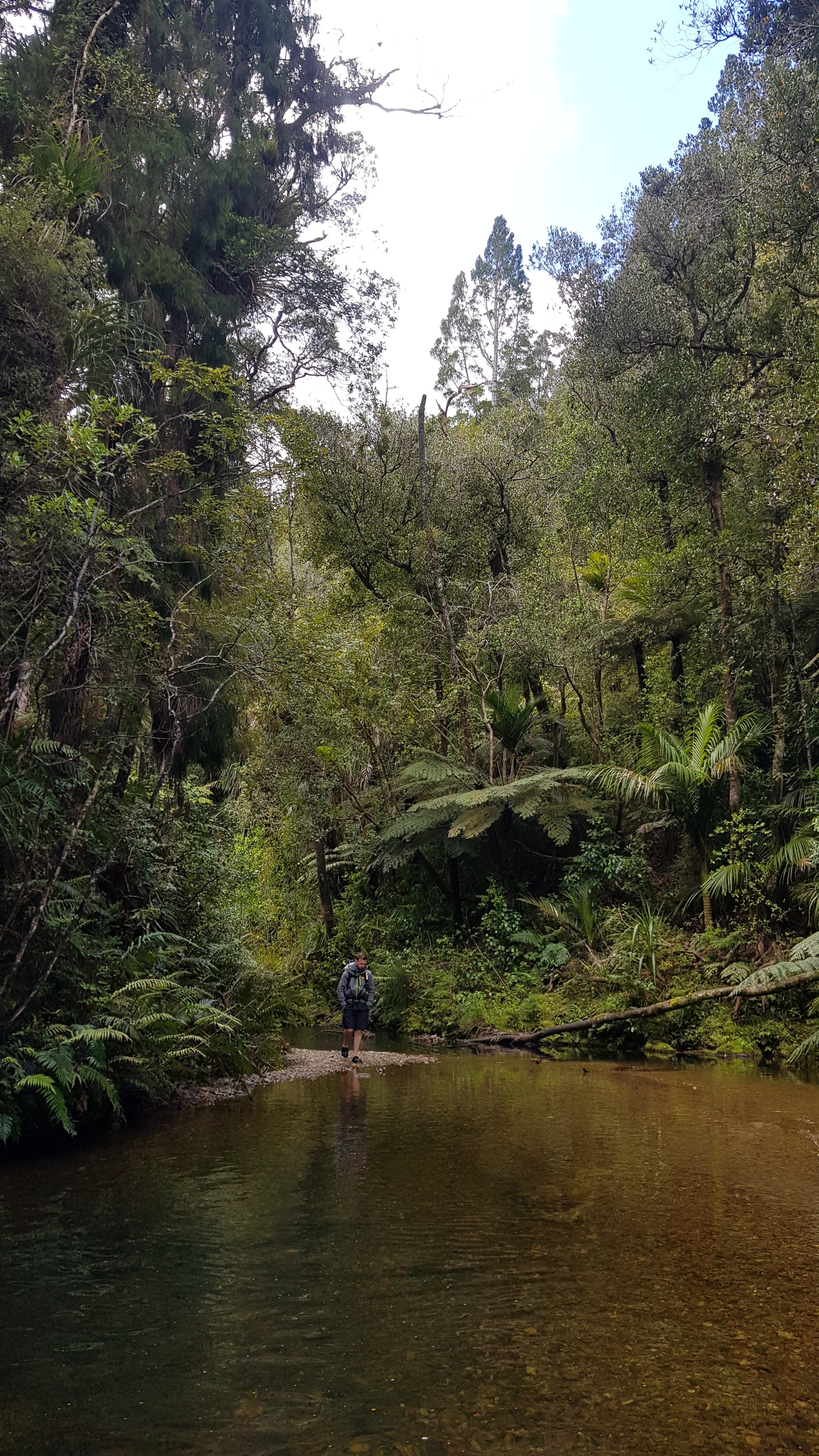 I was certain that this should be the point that we continue along the river bed but was overruled and we climbed up into the bush and over a small hill to meet the stream on the otherside. Somewhat frustrated by the unnecessary bush bashing it was a couple more of these attempts at using ambiguous trails through the bush before I put my foot down and declared we should simply stick to walking the river bed. By this point Jeremy had departed the river and had headed up into the bush not to be seen by us again for the reminder of the day.