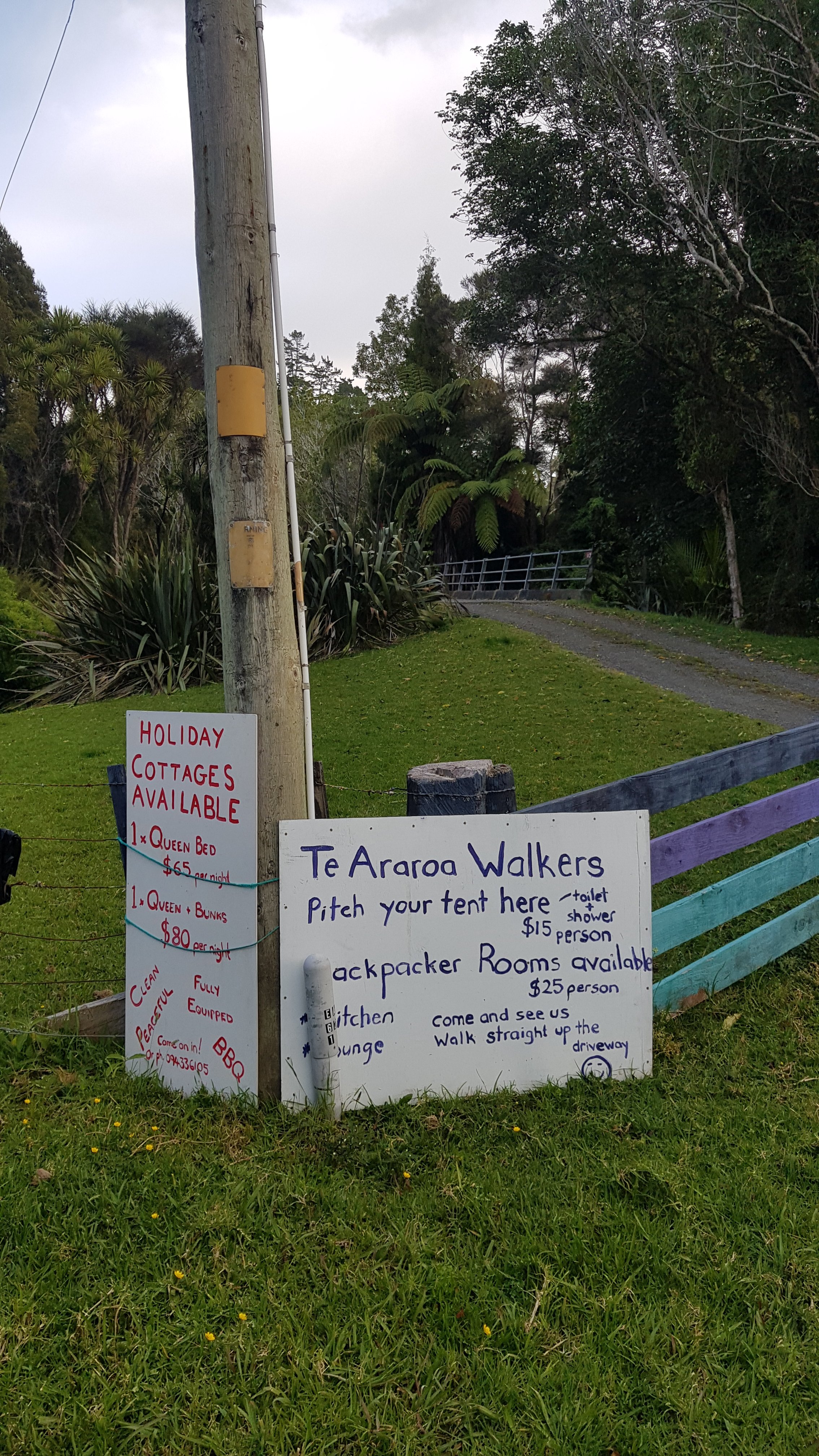 I checked my gps. 7km until Oakura. I read a comment on the Guthook app about a place not far up the road that welcomed TA travellers. We decided to make a decision about it when we got there. We rounded the corner and there it was.