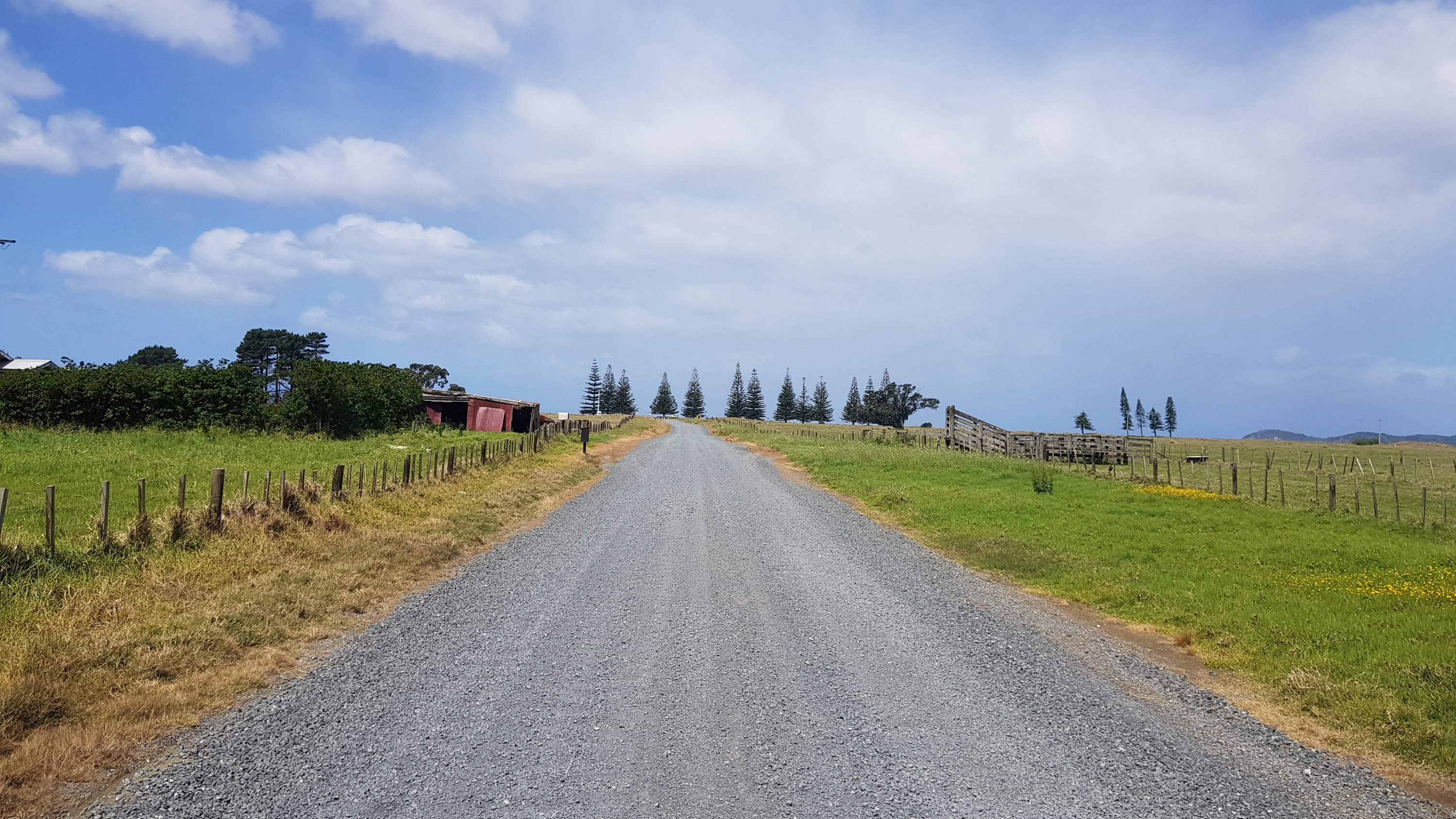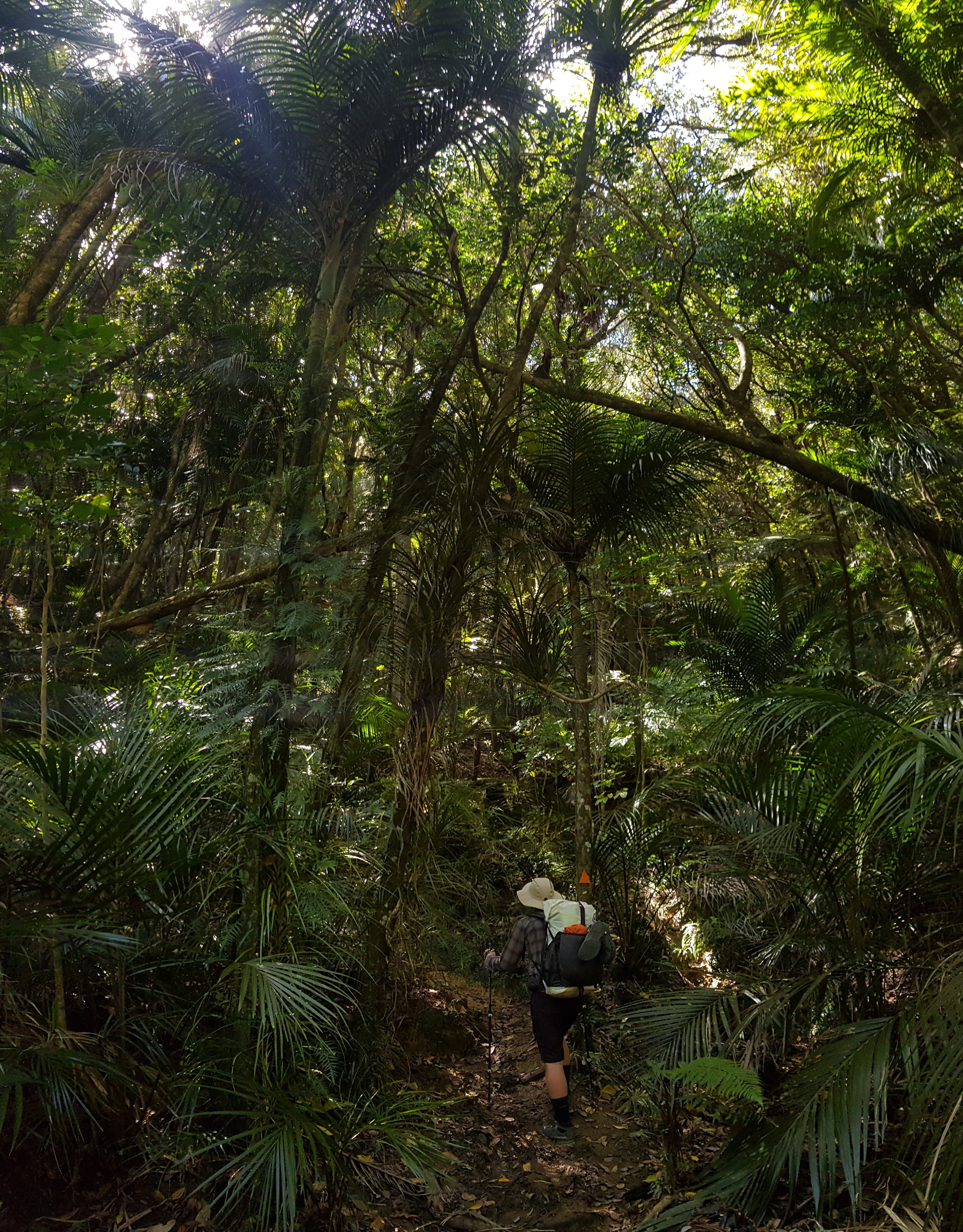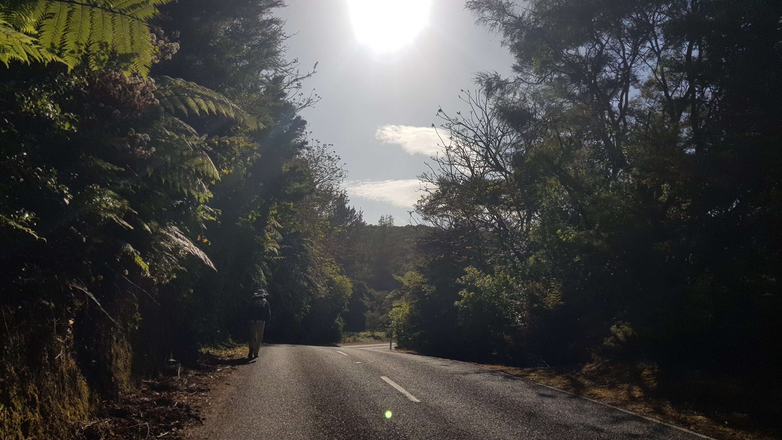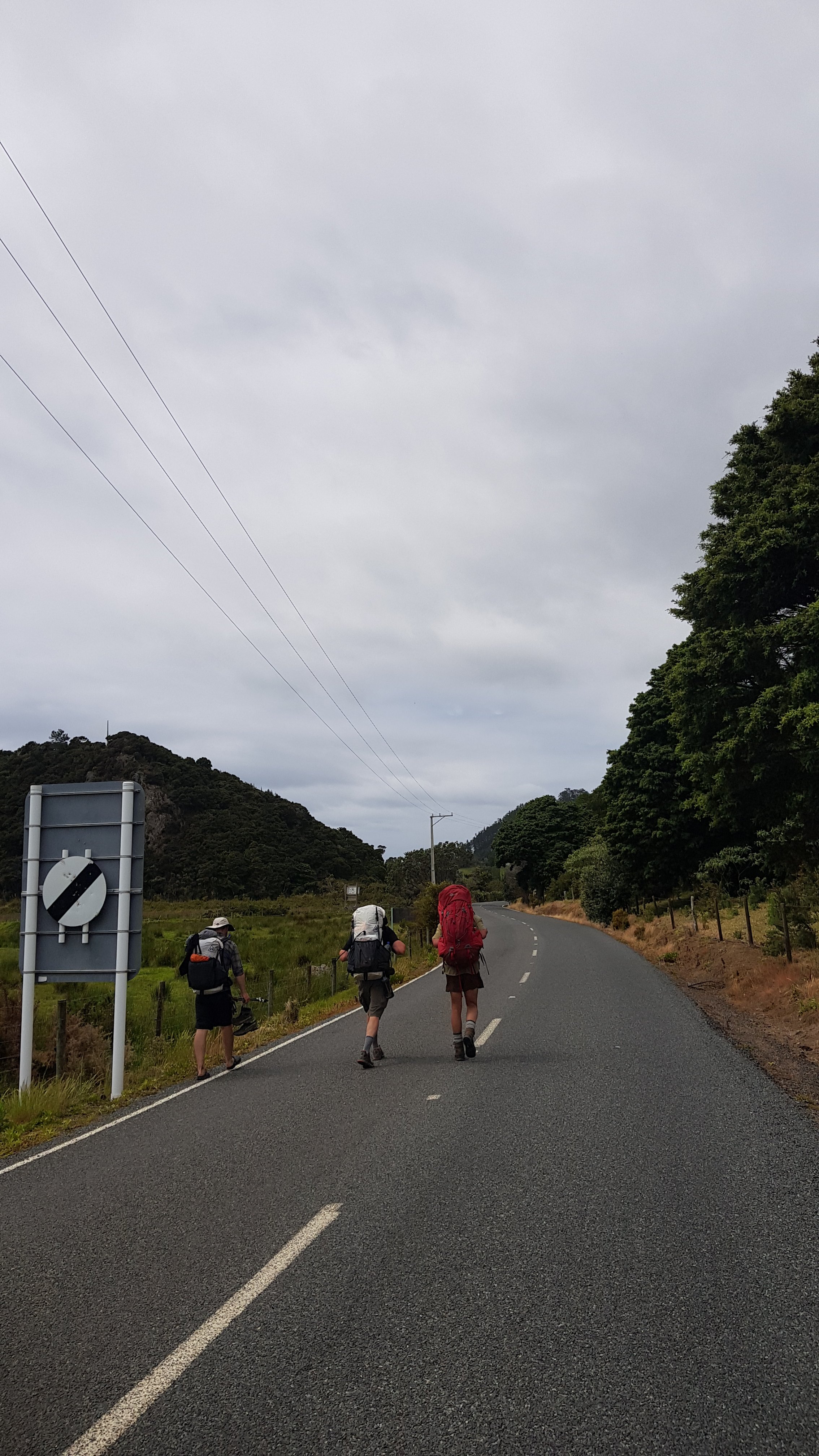 Back on track it was onwards to the Russell Forest our newly formed group on trampers headed. It was after midday by the time we started walking from the landing and the trail notes had advised that this section of the trail could be slow going so we were planning on camping at a DOC shelter 4kms into the trail. We had a 5km road walking connection before we even hit the forest so the shelter was a realistic target for the night.