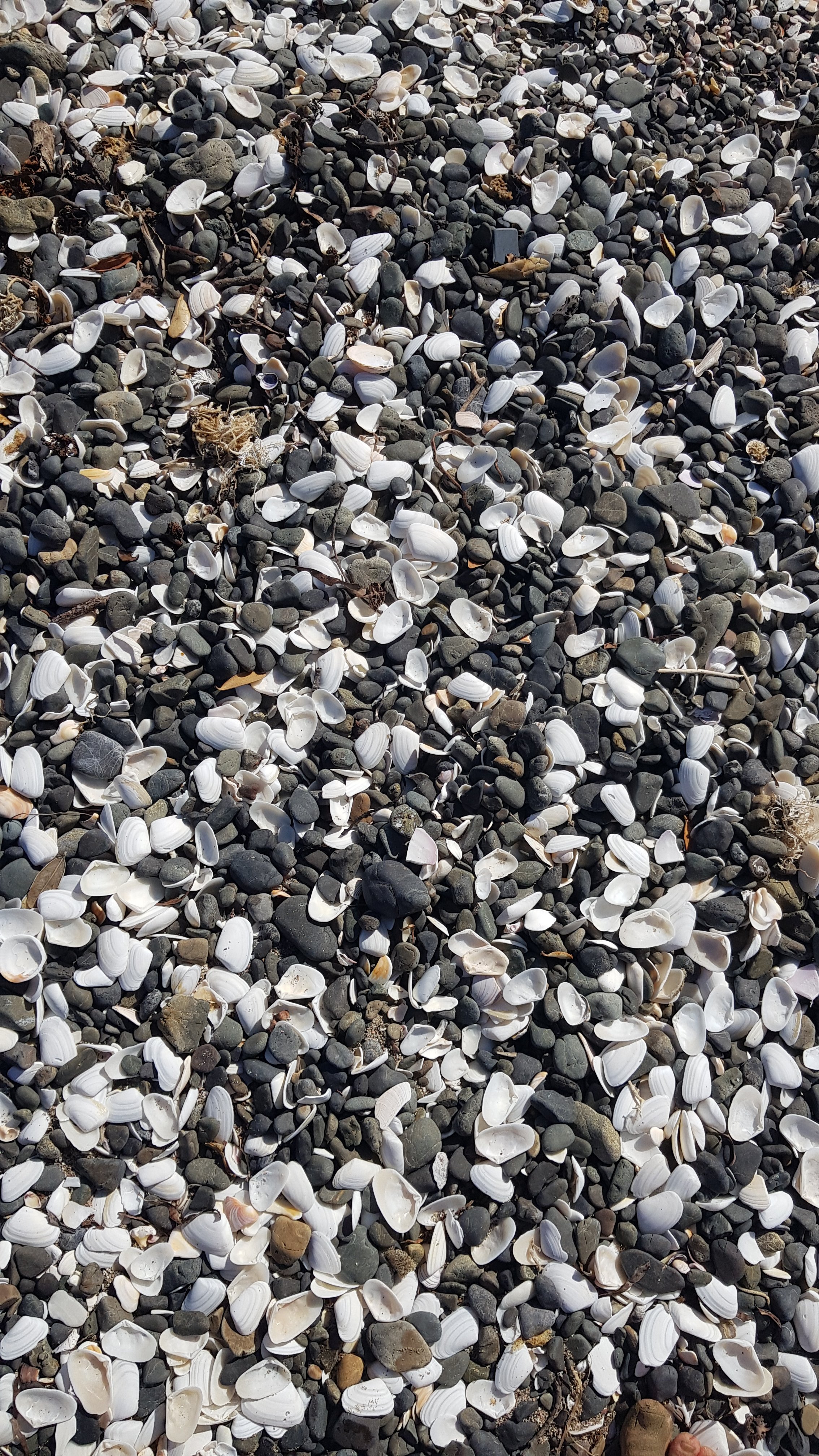 The sun was shining, melting away the morning frost and we sat on the grass by the beach and watched the waves lap over sea shells and pebbles.