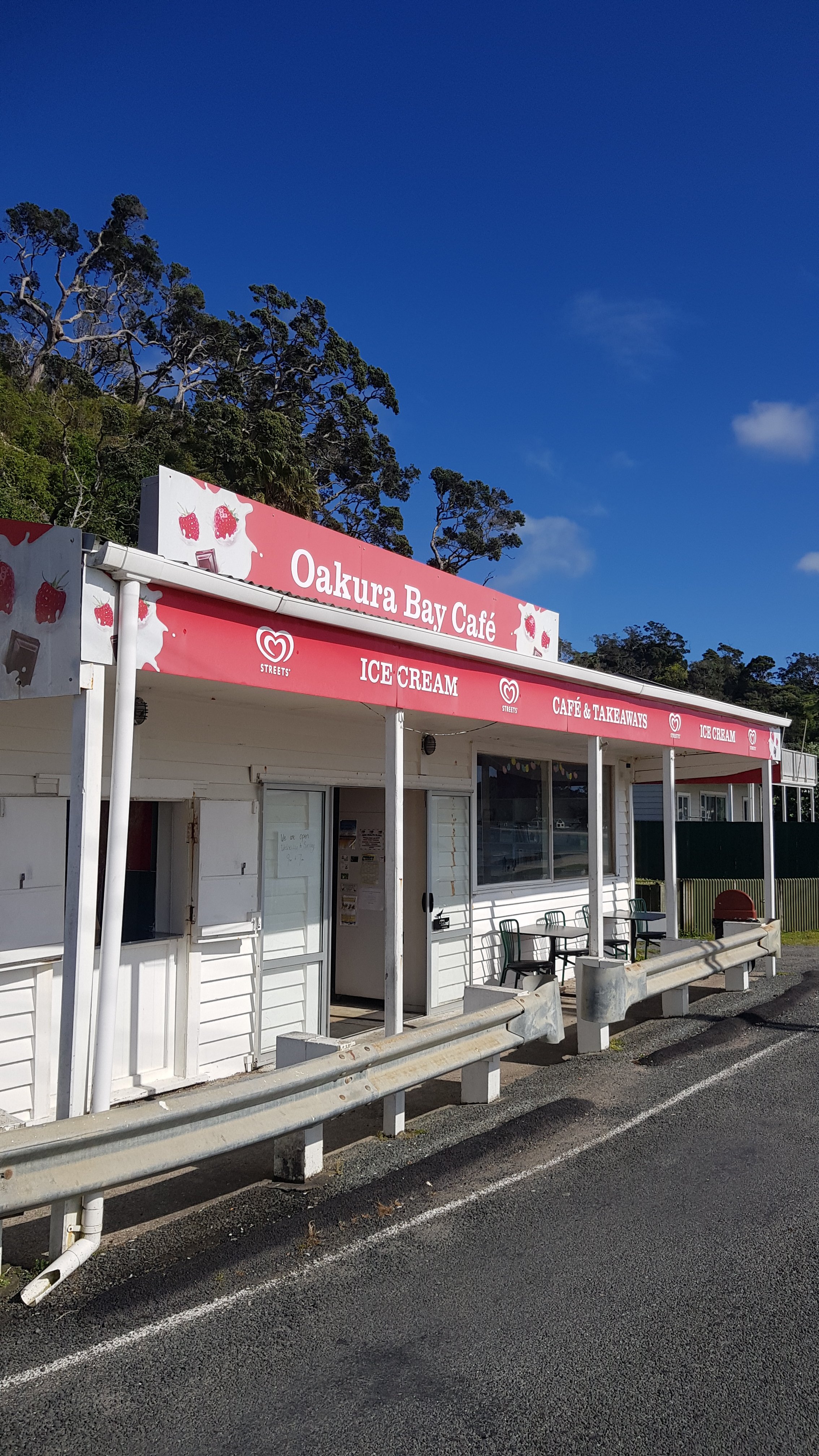 Although we’d already had breakfast we were hoping to make it down to Oakura for the takeaway store. A few kms into the walk a car was coming our way so I stuck out my thumb. Surprisingly she pulled over! Wasn’t going to Oakura but would drop us at the turn off. Perfect! This lady had recently moved up from Auckland and was headed into Whangarei for supplies and lunch with her sister. It wasn’t a long trip but it was a great help. From the turnoff we started walking down the road when in under 5 minutes I managed to score us another lift! That would be Leigh 5 Adam 4 on the unofficial hitchhiking score board for anyone keeping count. That brings us to 9 times in the last 2 weeks that we have rode with strangers. It has been a surprising enjoyable part of our North Island experience, giving us the chance to meet a varied array of locals.