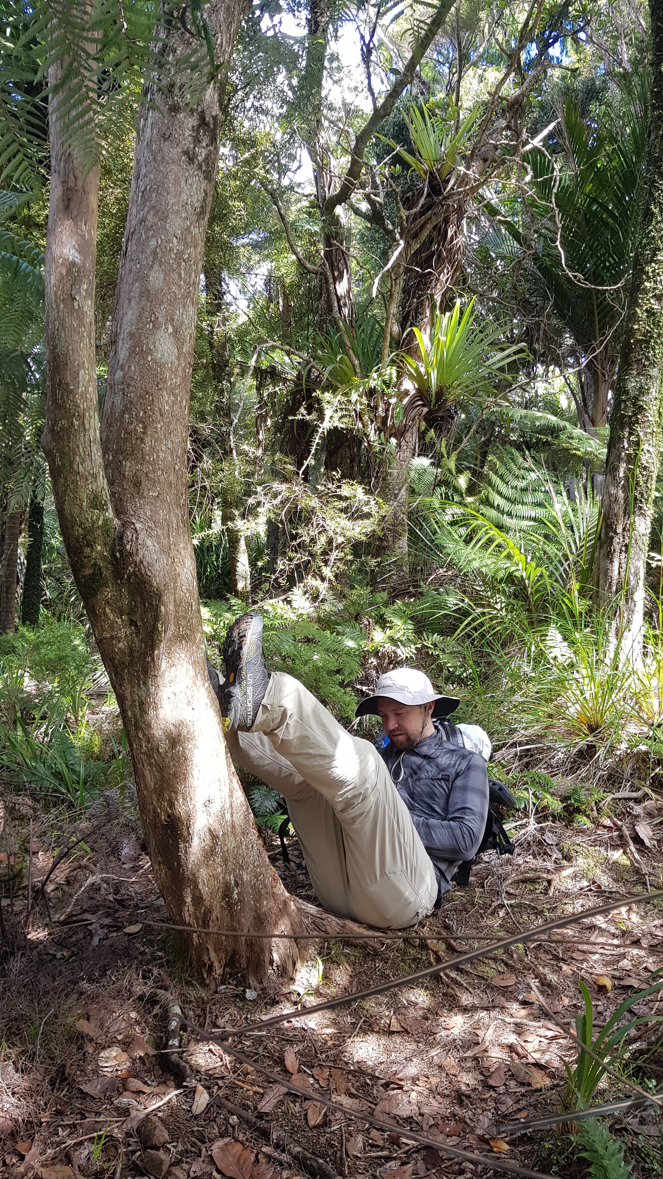 After 300km on the trail we have seen many possum and rodent traps, today we saw our first successful possum trap. Possums have become pests in New Zealand after they turned to eating the eggs of native birds. As a result there are extensive programs in place to attempt to eliminate them. A little grossed out onwards we pressed on to Tane Moana, the giant Kauri tree. Incredibly large it was amazing to see one tree sustaining so much life.