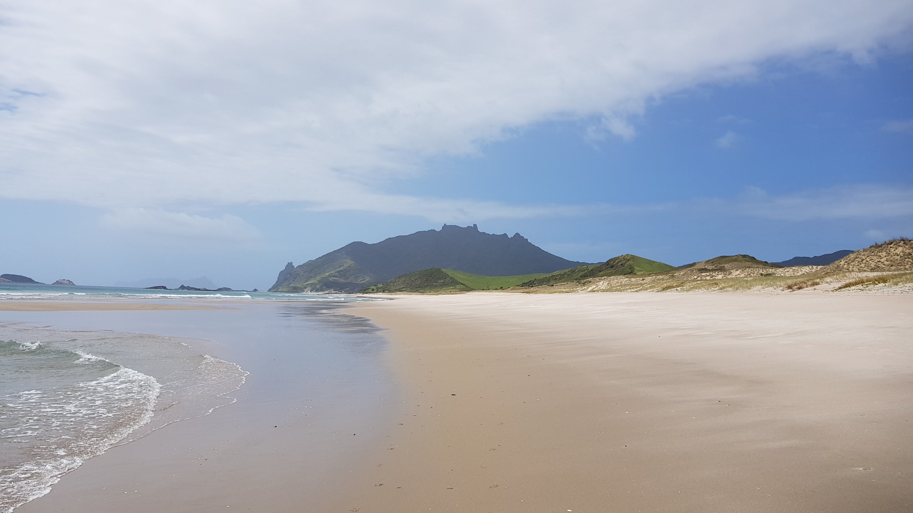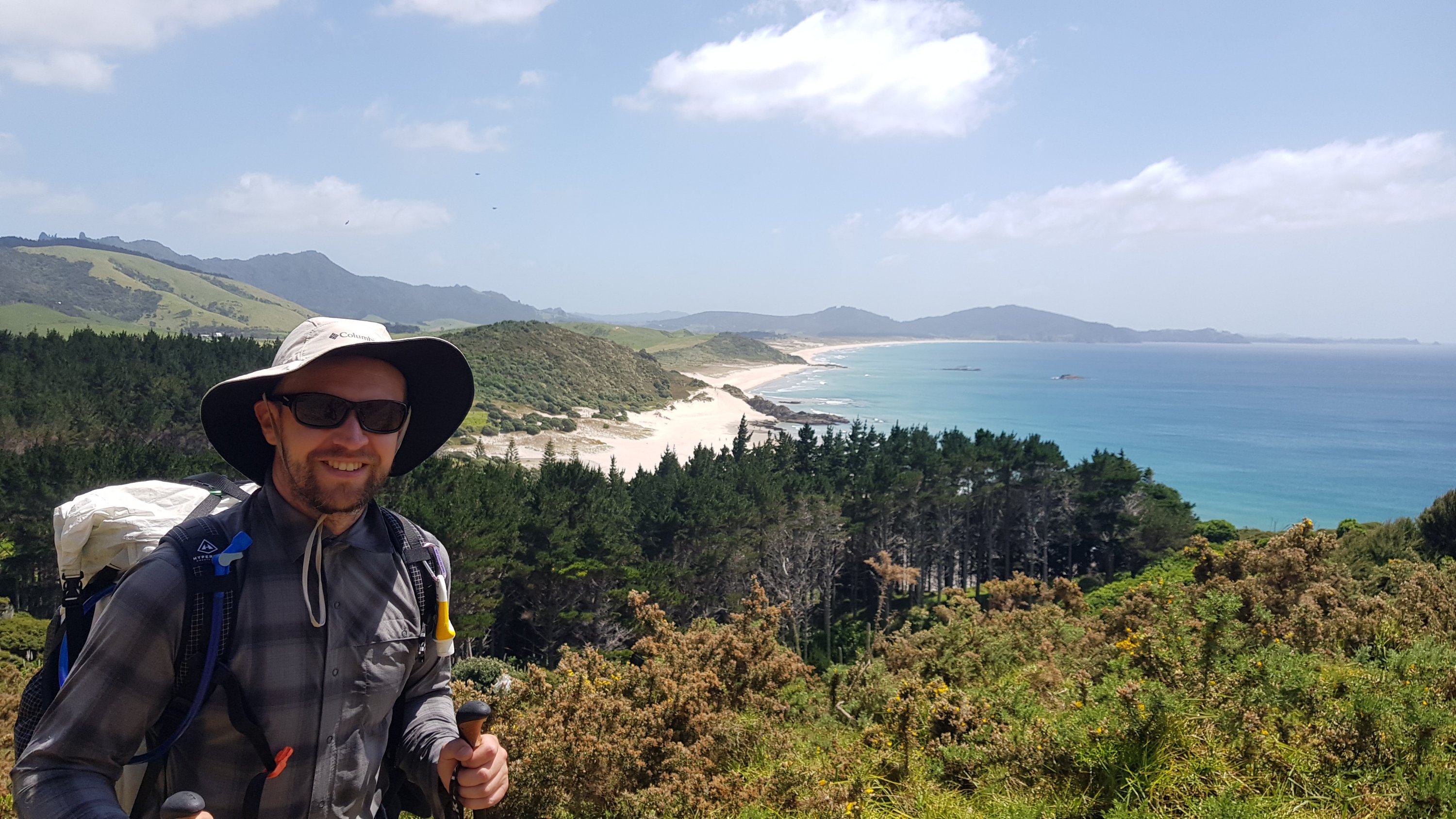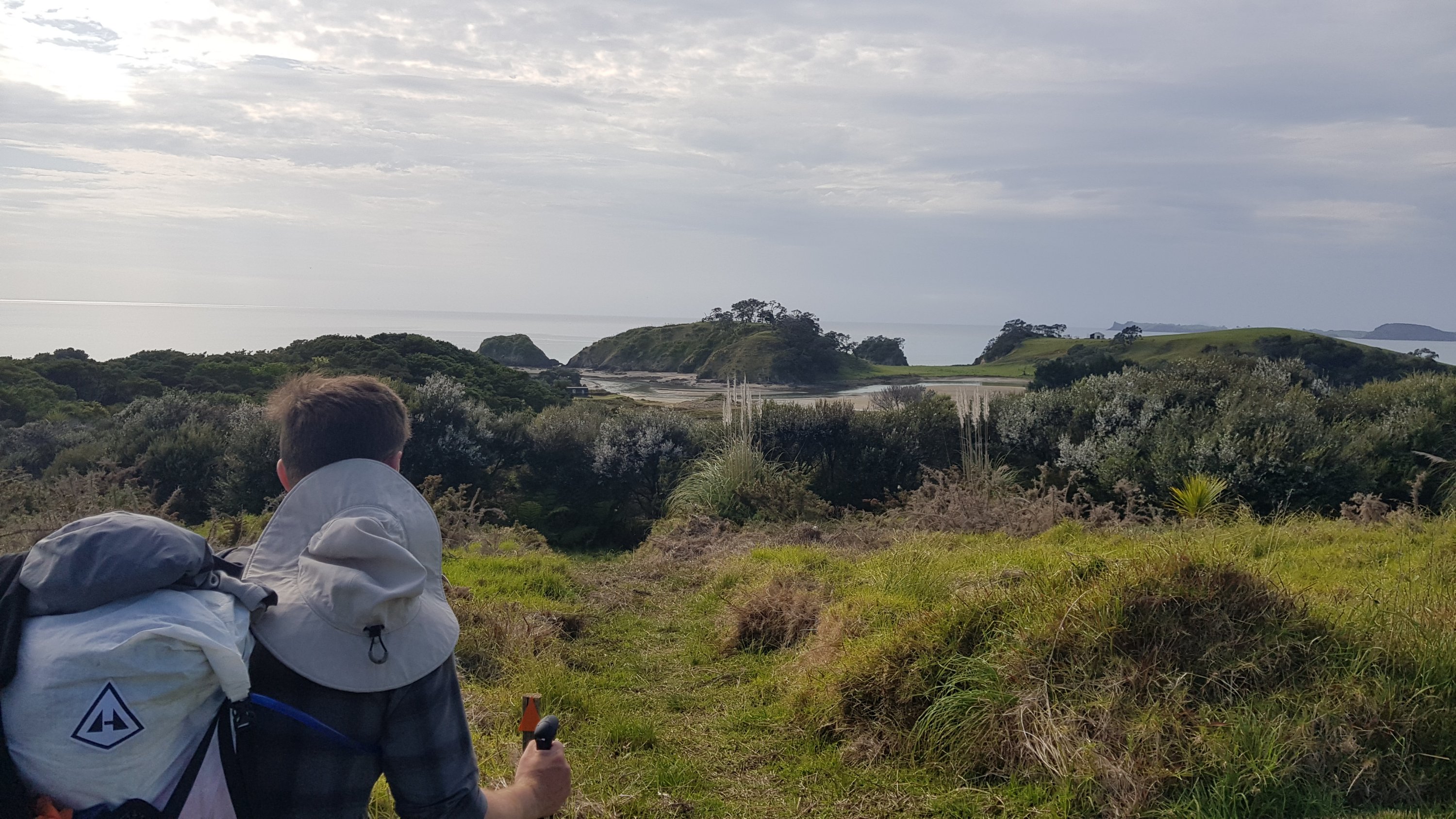 The closer we walked the Bream Head the busier the beach became until we hit the surf club. We had a bite to eat to fuel our bodies for the steep 476m to the Te Whara Trail summit. Popular with locals, it was enjoyable to be on a busy trail meeting people out day hiking. We got a few strange looks for carrying such large packs to the summit. One lady even said to me. “wow you are prepared!”. She was off in the other direction before I could tell her that I was on my way to Bluff not the other side of Bream Head.