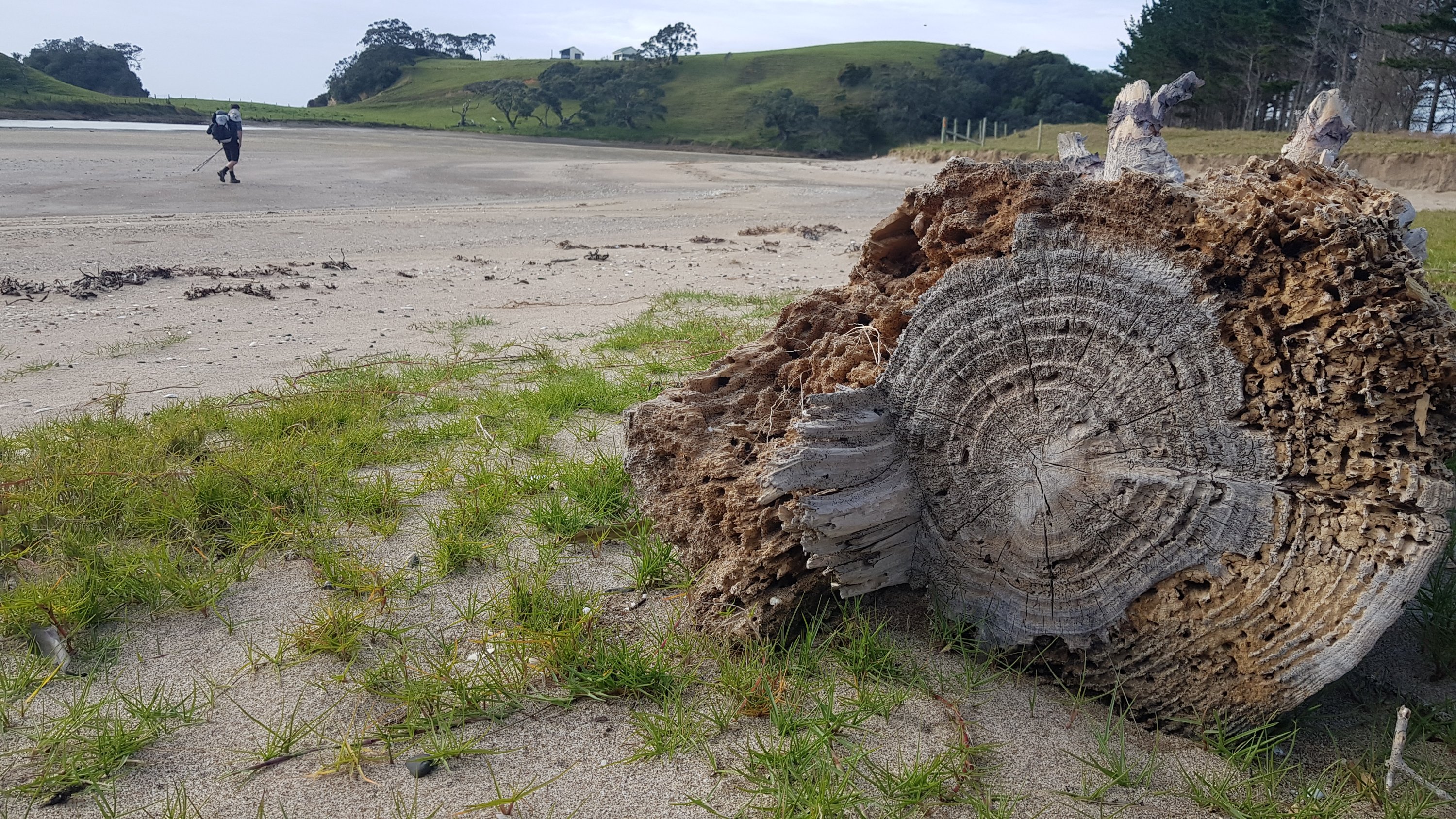 We arrived at our campsite around 5.30pm. It is one of what would seem to be the few free camps left in Northland. Trying to be good law abiding hikers we camped well within the designated free camp site zone. Unfortunately for us this was a patch of sand. Comfy for sleeping on but not so stable for an ultralight tent in gale force winds. At around 6.30pm the winds and rain picked up again to give us one last show of force. The pegs flew out of the ground, the fly flapped violently in the breeze threatening to tear and the poles contorted close to snapping point. When we eventually got everything under control we made the decision to risk a fine and moved onto a grassy patch for a solid anchor. With the tent full of our things we dragged the whole soggy, sandy mess across the lawn. In the panicked move we positioned ourselves on a slope with our feet a good 10cm higher than our heads. At that point in the day neither of us cared.