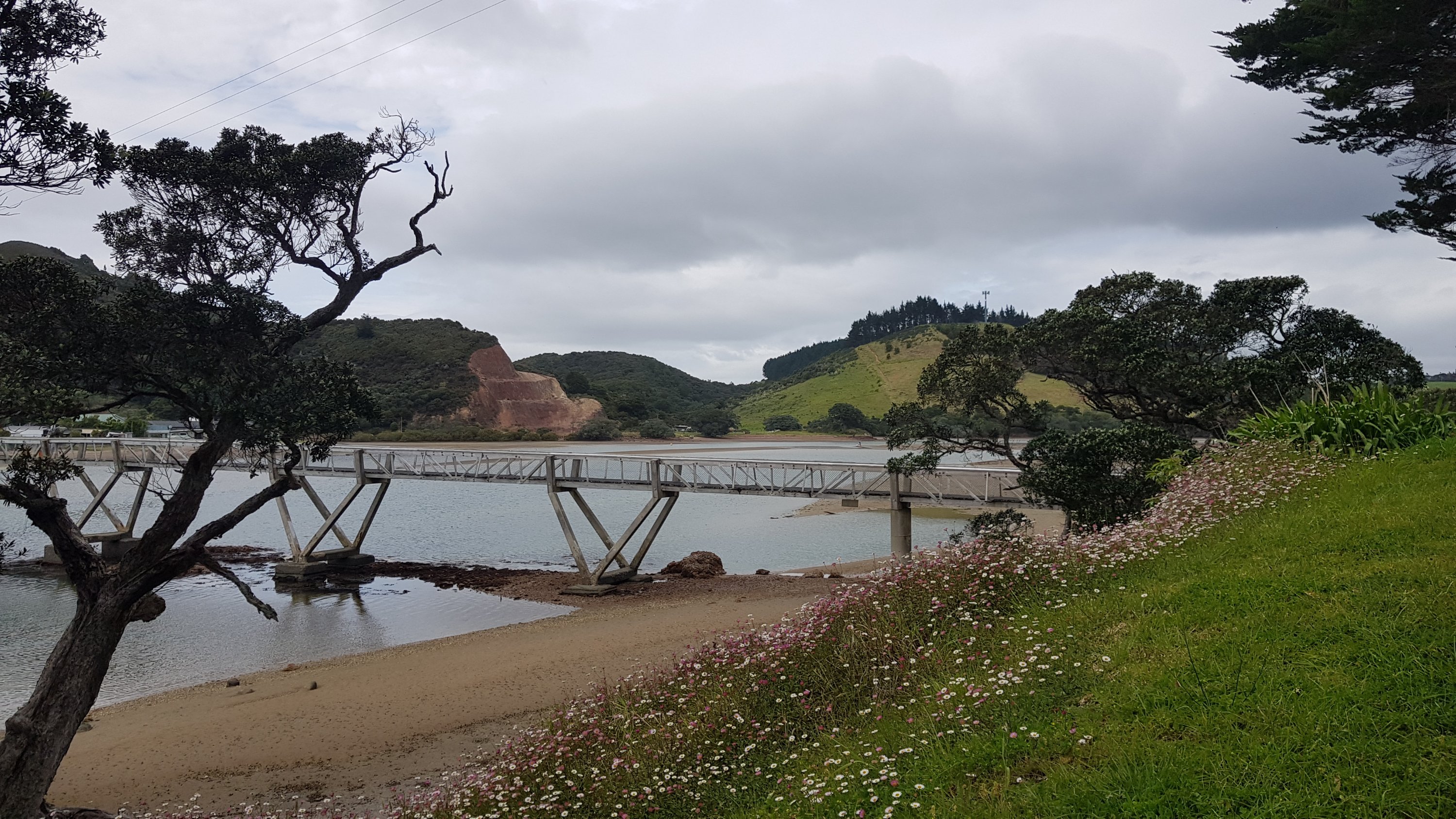 The foot bridge out of Whananaki is the longest footbridge in the southern hemisphere. Originally built in 1947 to allow kids in the south to attend school in the north. Before this their committed teacher would row them across the river. We braved the 100km per hour winds and stepped out on to the 395 meter bridge. I was scared of getting blown into the river, one hand gripped my phone, trying desperately to get a couple of snaps of this monumental foot bridgen the other white knuckled the railing.