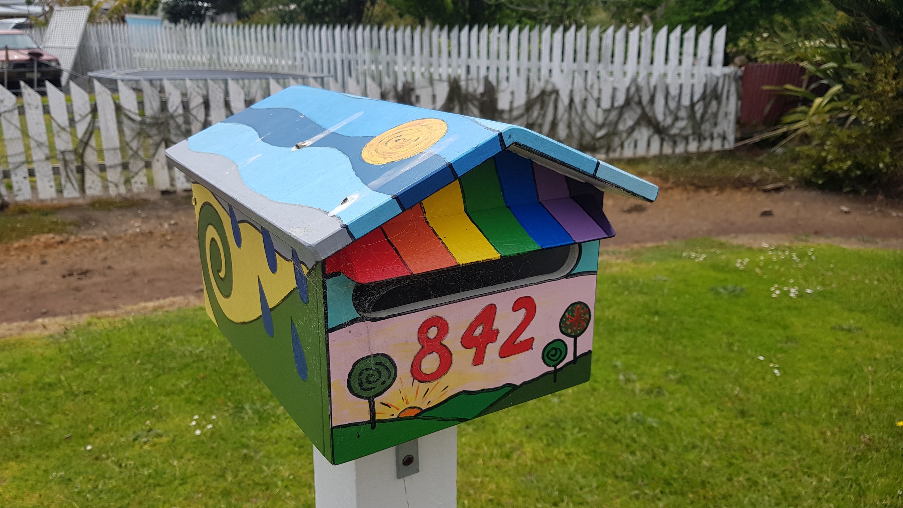 Cleaning our mud caked feet and wondering how far this dog was going to follow us, a rural post van came to a sudden halt around the bend. Only delivering newspapers and parcels on weekends the postie had a fair bit of space in her van and offered us a lift a few kms up the road. A couple of weeks earlier when Adam and I were looking to hitch a dangerous section of highway I had attempted to flag down a postie with no luck. I had mentioned to Adam how fun I thought it would be to be picked up by a post van. We definitely needed to accept! Adam, Rick, Tony and myself climbed in the back between the stacks of newspapers and parcels. Jeremy was also walking with us but declined the offer for a ride. Our driver had a few paper stops to make and then it was onto the Pataua foot bride to drop us off.
