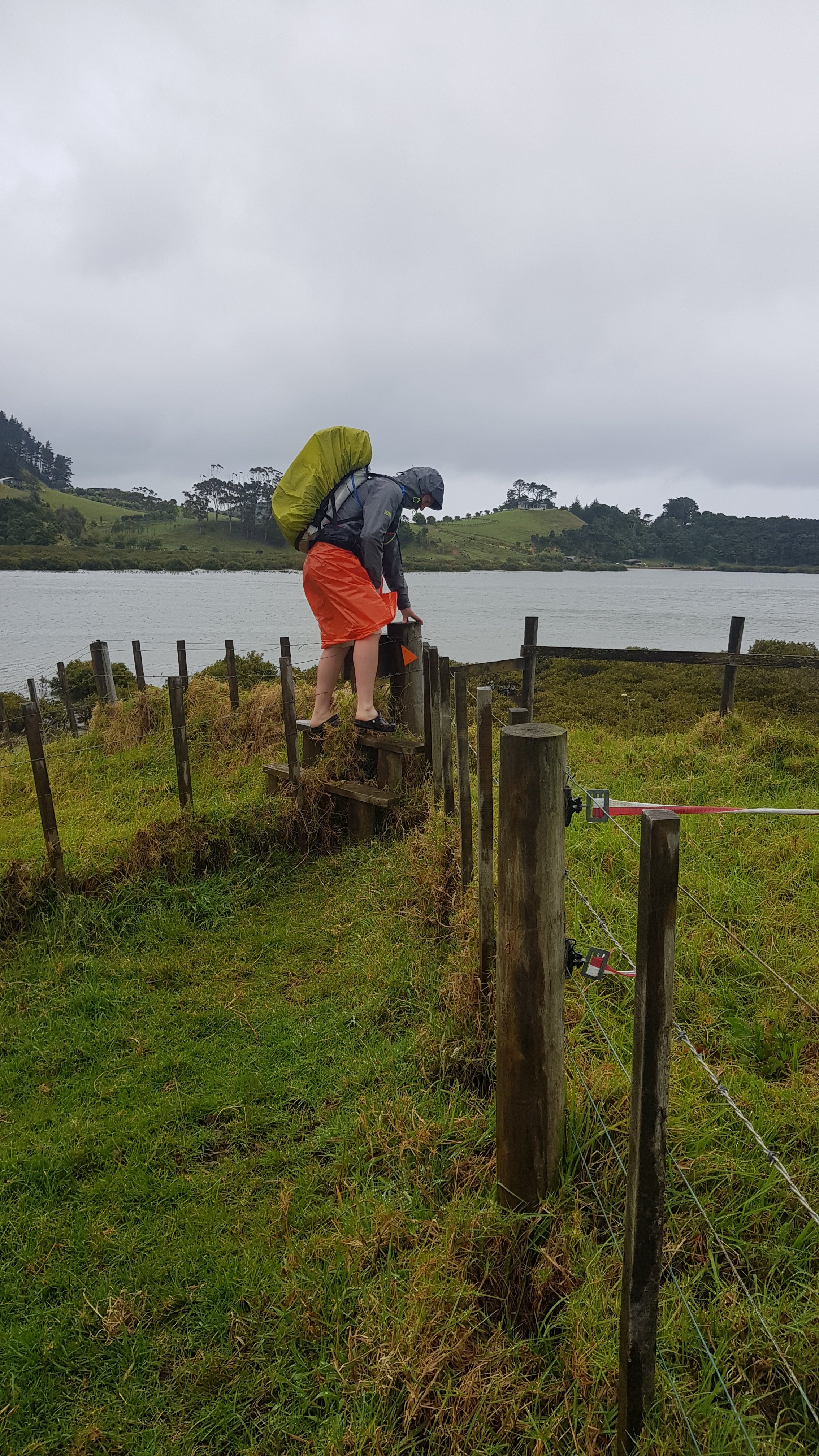 The threat of electric fences became very real today. On the Whananaki Estuary Walk we had to navigate several farm fences, stiles and gates. At one section the track came to a junction with an electric farm gate which appeared that it needed to be crossed. Adam was in the lead, and having opened several of these style of fences already, grabbed the top rope. clearly he didn’t give the rope enough respect and after stepping through got a shock. Dropping the rope as a natural reaction it now lay on top of the bottom fence rope, the electric sparks audible. Given it was already down I stepped through while we figured out how to get it back up without electrocuting ourselves. 3 shocks later Adam had given up and took to using his hiking pole to get the hook back in place. Meanwhile I used every power in my core being to remain composed and not film the whole ordeal. Gate safely back in place I turned to see where the track took us next. ‘Oh no!’ I exclaimed loudly. I could see the bright orange marker we needed to follow, it was back on the other side of the fence!