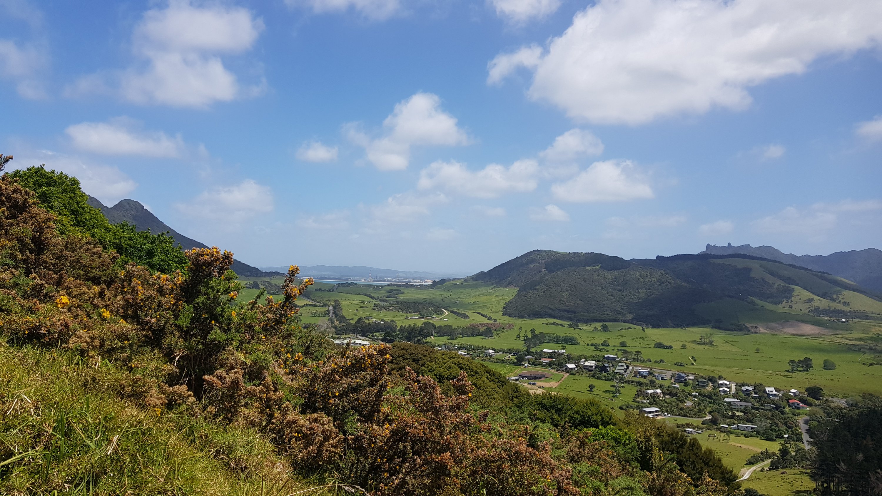 After a few snaps through a rain speckled lens we continued uphill to the Mount Bledisloe lookout. A small detour with incredible views to the coast. The lookout gave us a birds eye view of today’s destination, Paihia!