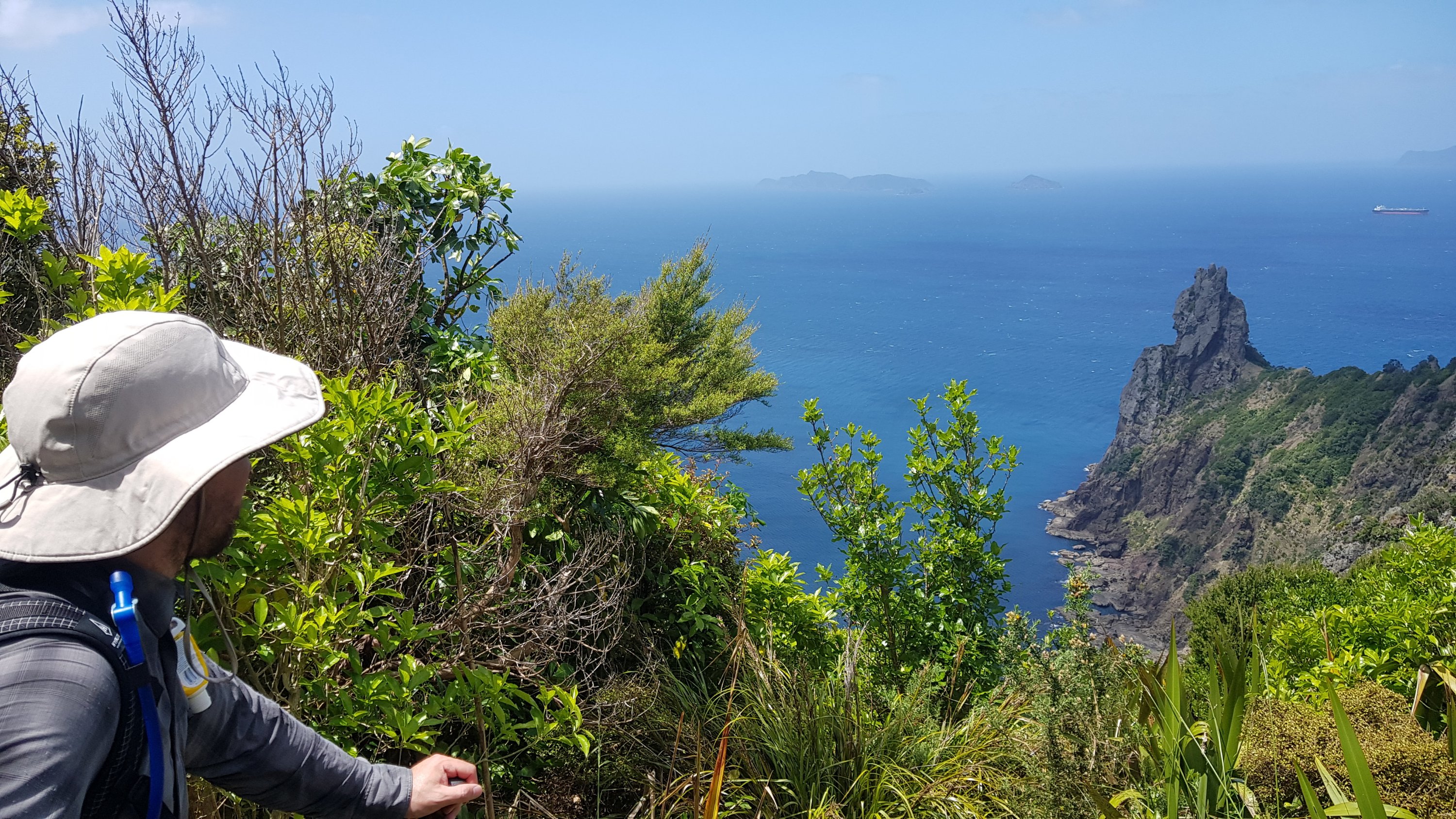 We climbed a final hill which rewarded us with beautiful vistas out to the bay before heading into native forest for more steep climbing.