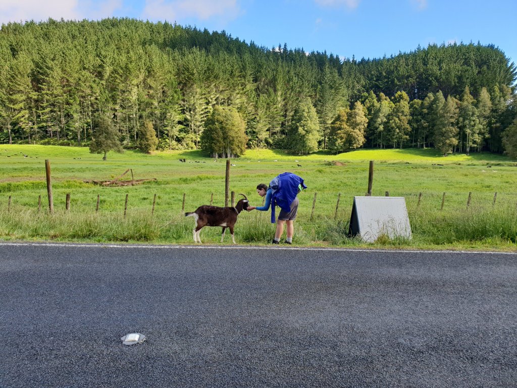 Our Swiss friend Robert had summited Pirongia the day before us, spent the night atop the mountain and had started making his way down that morning. We were about half way down the mountain when we received a text from him advising us of road closures at the bottom. A car rally was being held along 3 of the roads we would need to walk tomorrow to make it to Waitomo. To get through that section by the end of the day would mean an additional 20km out of way. We wouldn’t have enough day light or energy to achieve that so we dialled the number of a local homestay. Lynn and her husband Scott were saviours. We would tent at their place that night and they would shuttle us around the road closures the next morning. Lynn kindly offered to pick us up from the trailhead but feeling guilty about having to skip some of the roads tomorrow we decided to walk the additional 7km off trail to their house. After a snack break which was more like a second lunch for me, we continued the remaining 2 hours off the mountain. My knees were telling me they’d had enough so I was thankful to reach flat ground. Our boots were soaked through and we were covered in thick black mud to the shins. It was a big, challenging day but we were proud to have made it and to have coped so well.