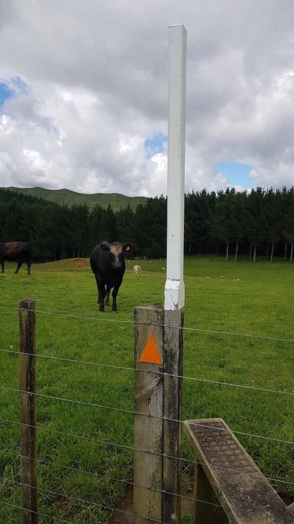 Not long after meeting Mr goat, the trail veered from the highway through private farmland. At the trail junction, there was confusingly a padlocked gate marked with ‘private property – do not enter’. We triple checked our maps and decided it must be right and climbed over. We followed the GPS and after not too long trail markers began to appear.