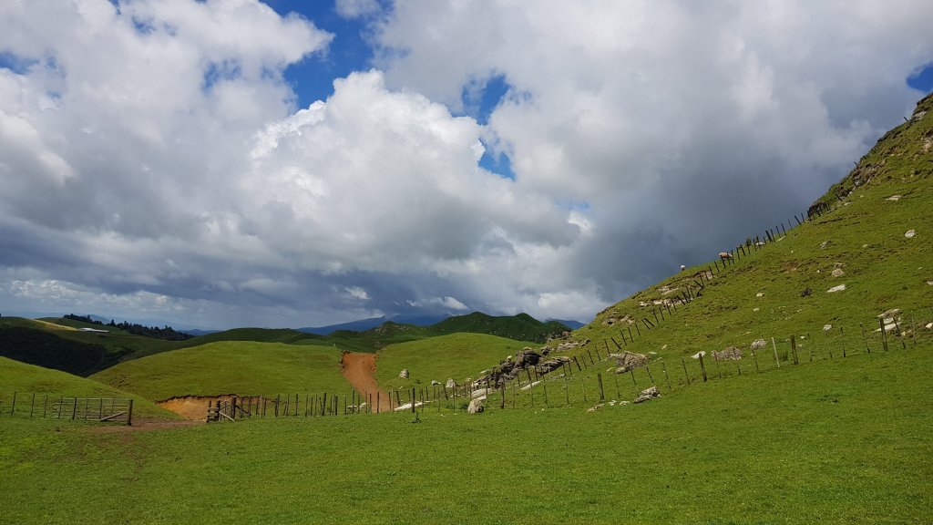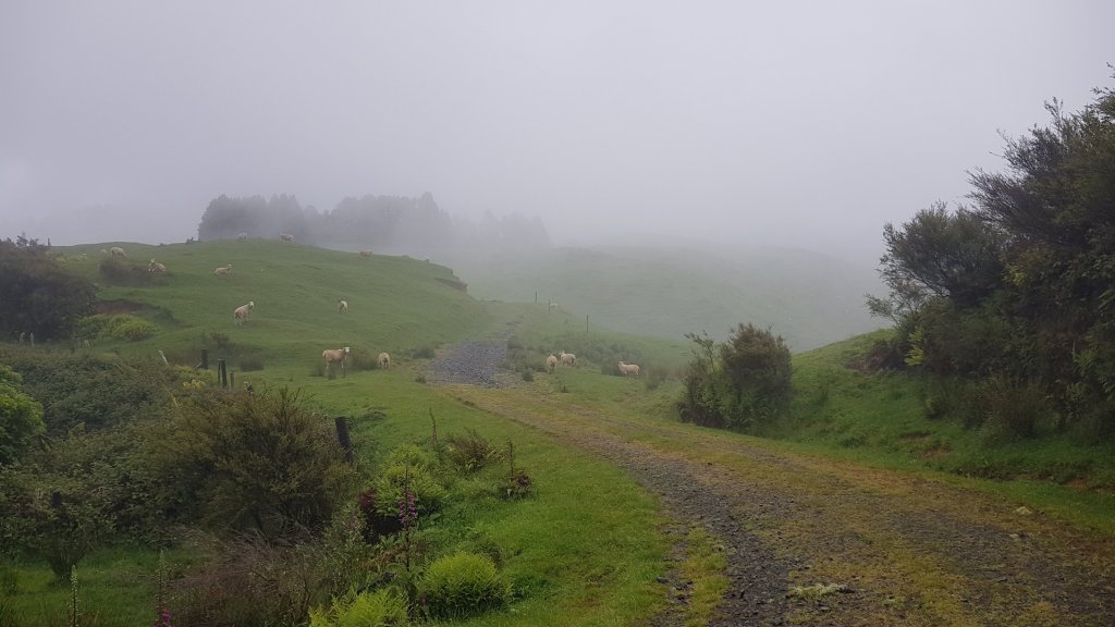 Though it was only 5km through the farm and to the Waitomo track turn off, it felt like 10km. This was the lowest point for me on the trail yet. My hands were beyond cold, I had started to lose mobility in them and was worried about getting any colder. A few kms through the farm we dropped a little in height and the conditions eased up. The fog cleared a little and the winds dropped. The rain would continue on and off all day but nothing like we had experienced that morning.