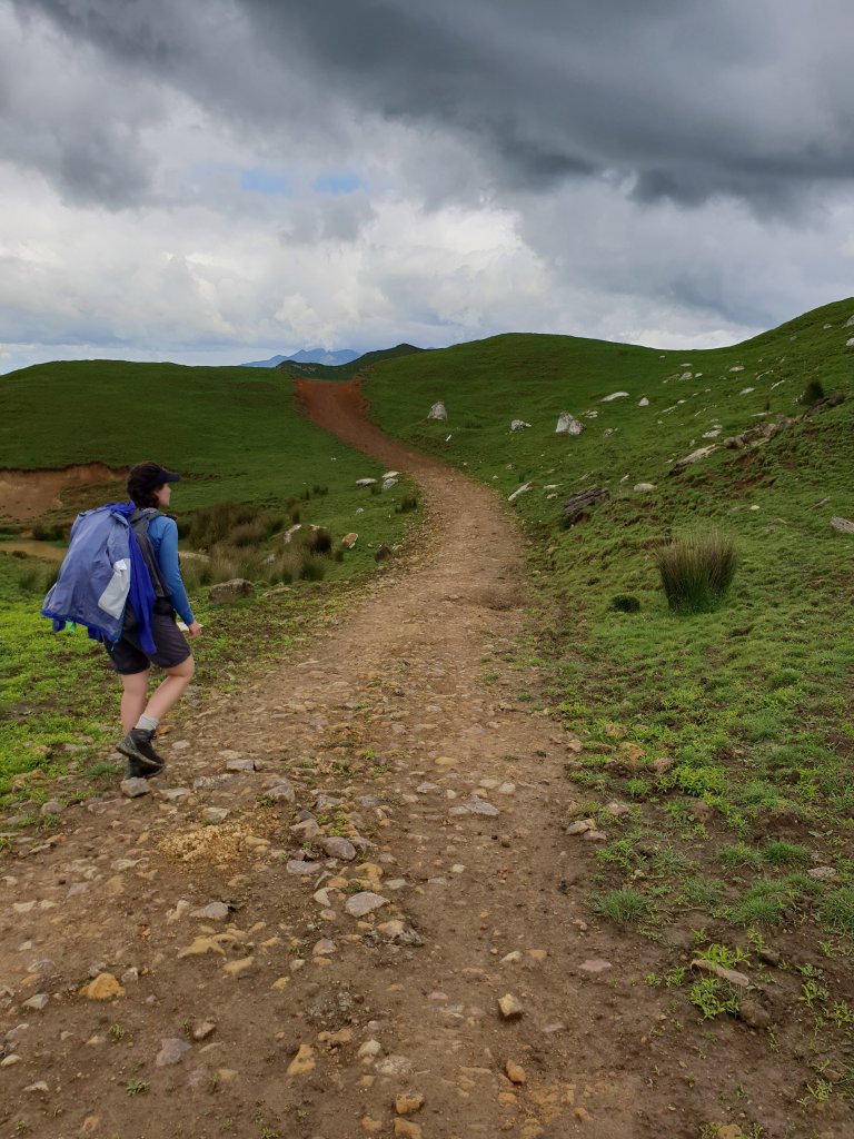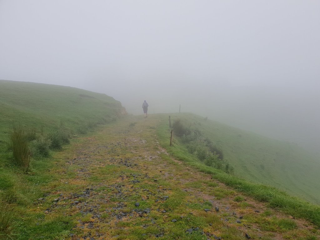 As the kilometres went on the winds picked up and the fog intensified. We had to cross over a hill on the farm, the visibility was so bad at the peak of the hill we could only see 10m ahead. The winds were pushing us around with our packs on and I was getting very cold very fast. The conditions made it slow going.