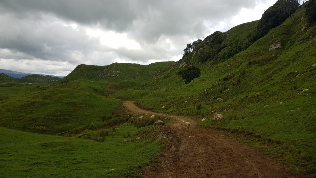 The farm we walked through was a beautiful big sheep farm with a sprinkling of cows. The paddocks were lush and green and as the track climed we had spectacular views over the valley below us. I felt like we were in Ireland with the green grass and rocky cliffs surrounding us.