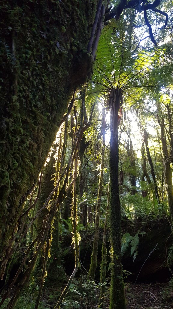 Over the stile we entered a beautiful stretch of rainforest, well graded with grand trees stretching tall above us. It was magical under the canopy with the afternoon light filtering through.