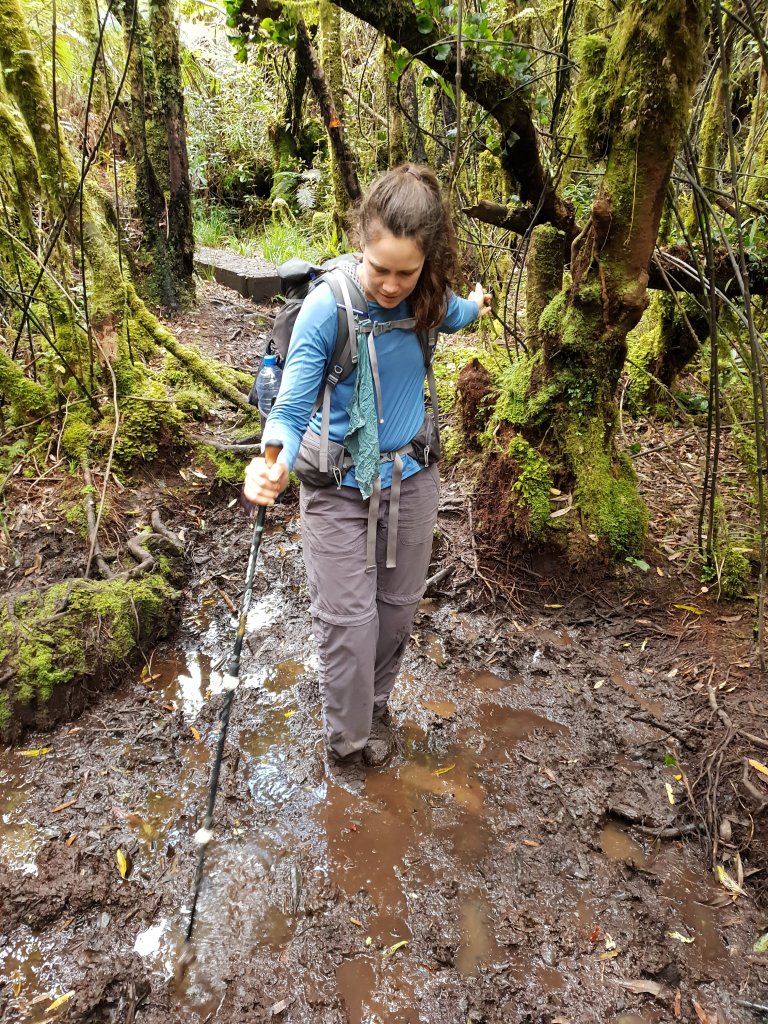 The way down was 4hrs of picking our way through boggy mud patches, twisted roots and rock scrambles. The forest was stunning, tranquil rainforest but our eyes were mostly downcast, looking out of the gnarled roots that seemed to be reaching out for our feet as we walked past. If felt as if they were trying their best to leave us rendered with twisted ankles.