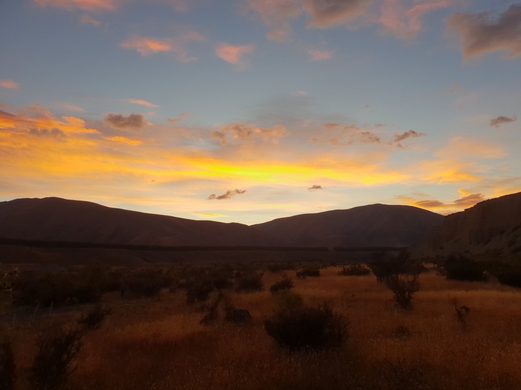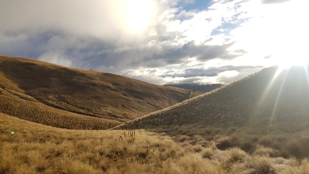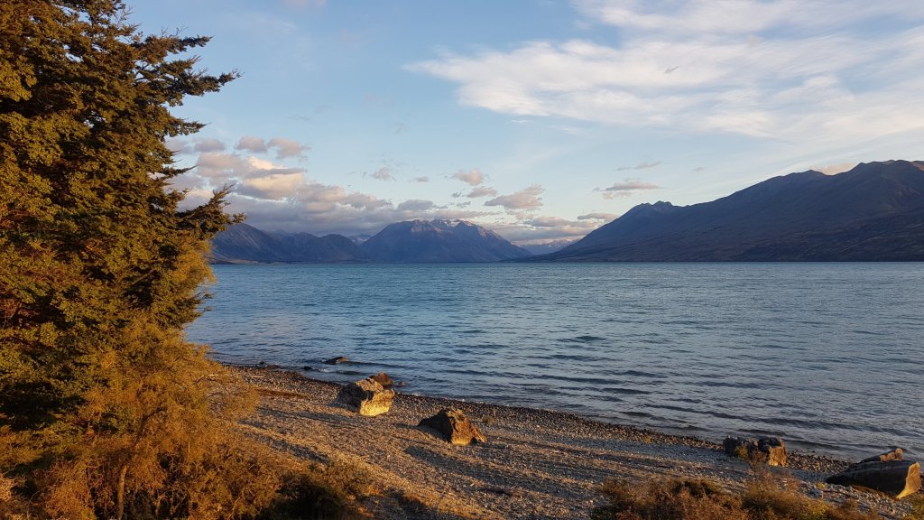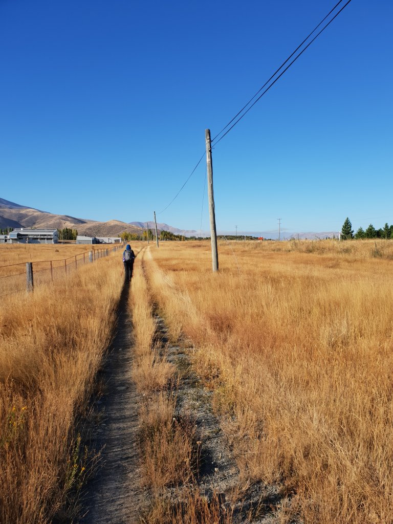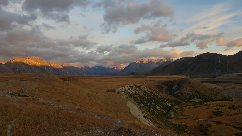 For the first time in a few days we managed to get up early and leave our campsite as the sun was rising. Despite being on the road shoulder again at times, I really enjoyed the morning walking, as we were regularly granted views of the sun rising over Lake Ohau.