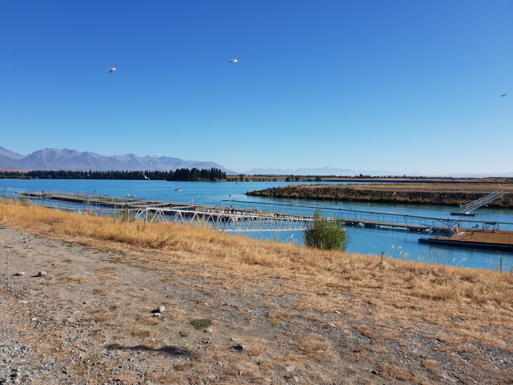 Following a highway for the first few kms, we reached another salmon farm before joining a dusty farm road which would take us most of the way through to Lake Ohau. After our recent highs on the trail, this day was a bit of a nothing day. It was hot on the exposed road and not much fun.