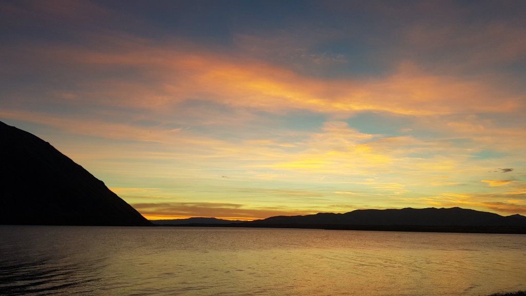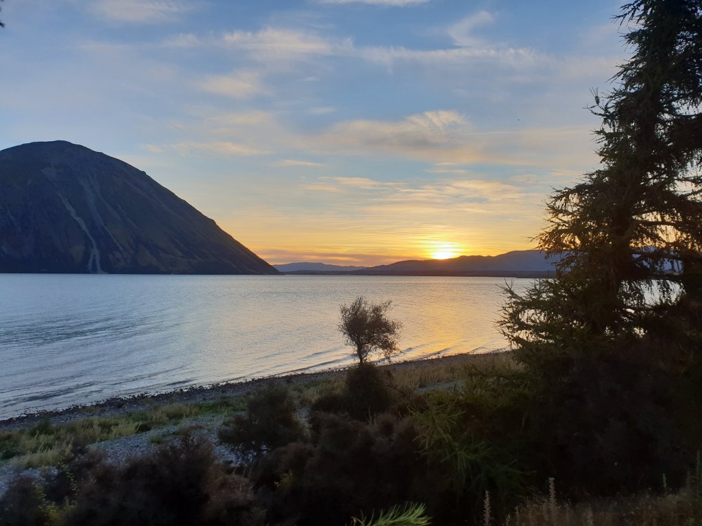 We left the warmth of the pub just in time to catch the sun setting over Lake Hawea from our tent site.