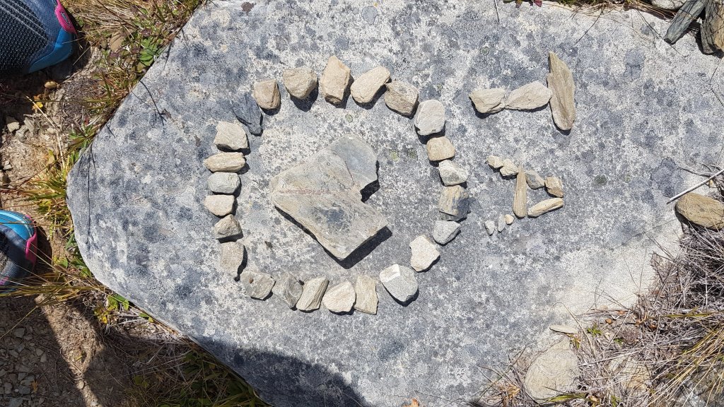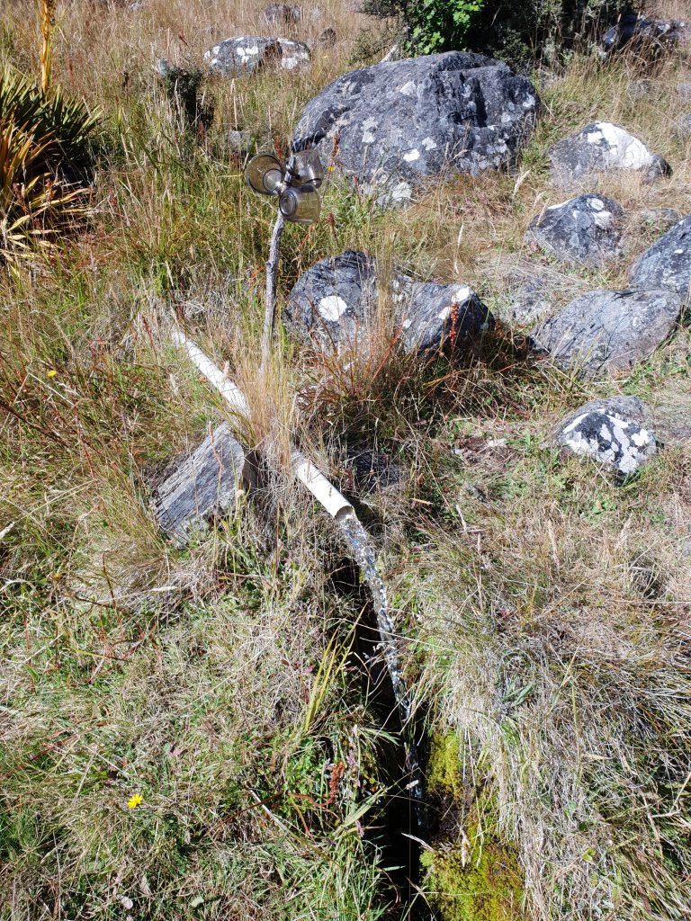 The track climbed through a shady beech forest with plenty of water available in mountain streams along the way. By mid morning we had emerged from the tree line with a few hundred more metres to climb to the top of the saddle. I celebrated the occasion by stopping to drink from a set of glass cups that someone had thoughtfully (and curiously) left on the trail.