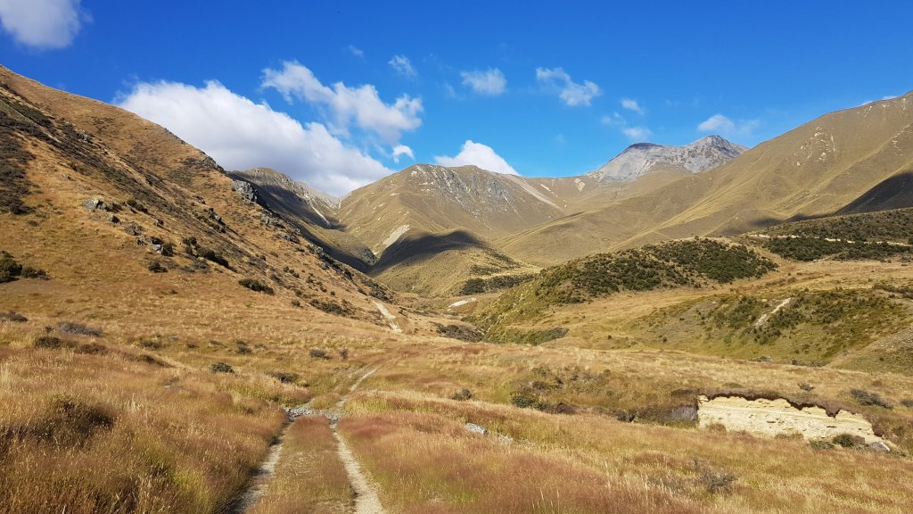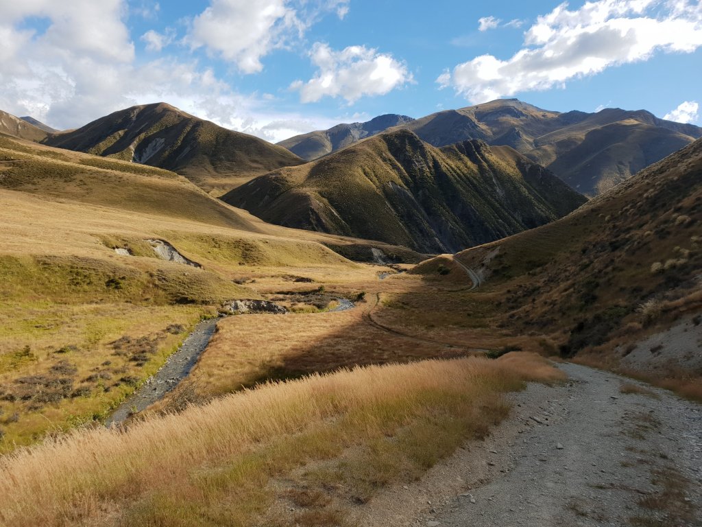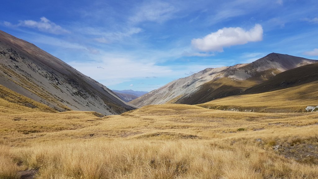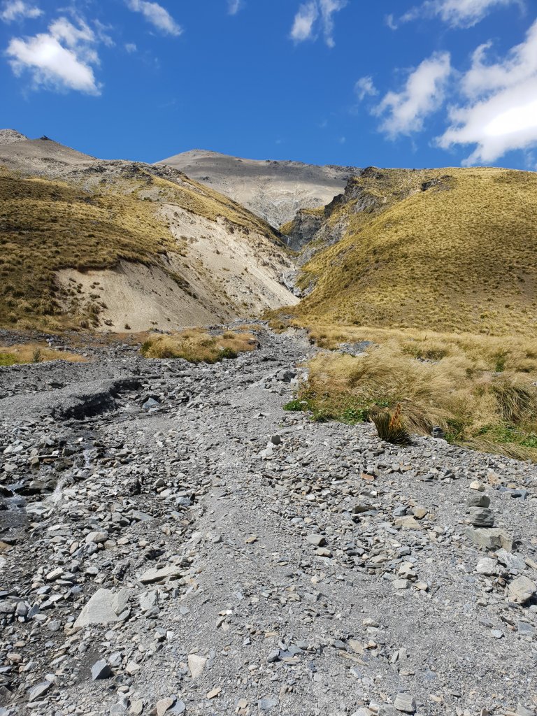 The valley really opened up before the river and the wind gusted across, buffeting us around the trail. The river valley looked unreal in the afternoon sun. Despite my initial concern, the Ahuriri River not as wide or deep as I had expected. The crossing would still be fun nonetheless.