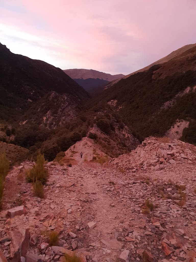We were up and away early, before the sun rise, doing our best to pack up our stuff in the dark while the NZ family slept in the remaining bunks of Top Timaru Hut.