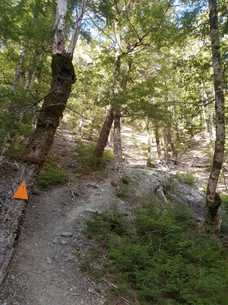 After a few km of lakeside tracks, we joined the Sawyer Creek track on DOC land. Wide, well-graded track and lots of shade were all a bonus.