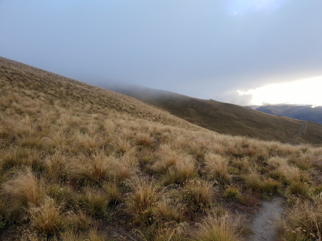 With the overnight rain, it wasn’t exactly a surprise to wake to heavy mist surrounding the hut. The trail didn’t look overly enticing in the morning mist, so we delayed leaving the hut for as long as possible, preferring the warmth of the hut.