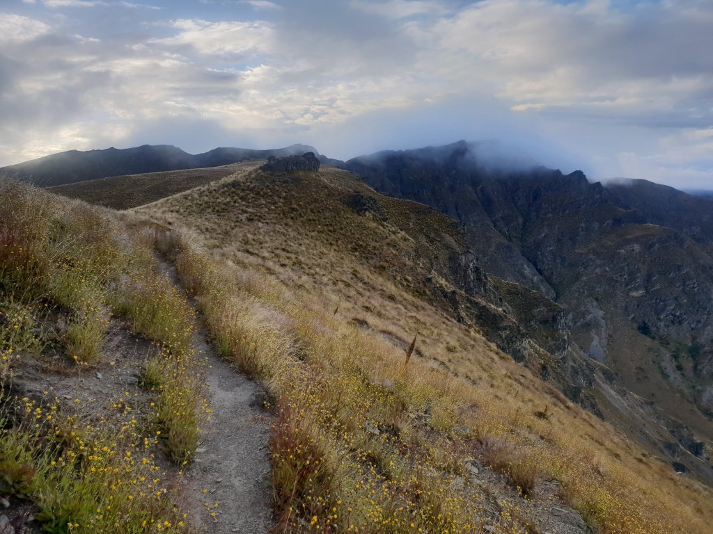 It was a tough climb straight up a loose scree slope to kick off the day. The trail then took us across converted farmland, where we both ran into a lost sheep that seemed to confuse us for a farmer from a distance, walking straight towards us before changing its path when it realised it did not in fact know us.