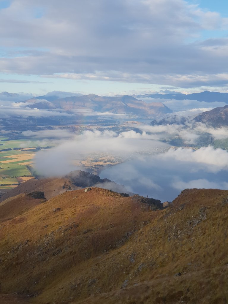 We were blown away by the views on the descent. Walking along razor edge ridgeline, low clouds danced around the track and even a rainbow turned up to the party. It was so quiet and still up there that I could even hear Leigh yelling at me from a few hundred metres away to hurry up and stop taking so many photos 😂