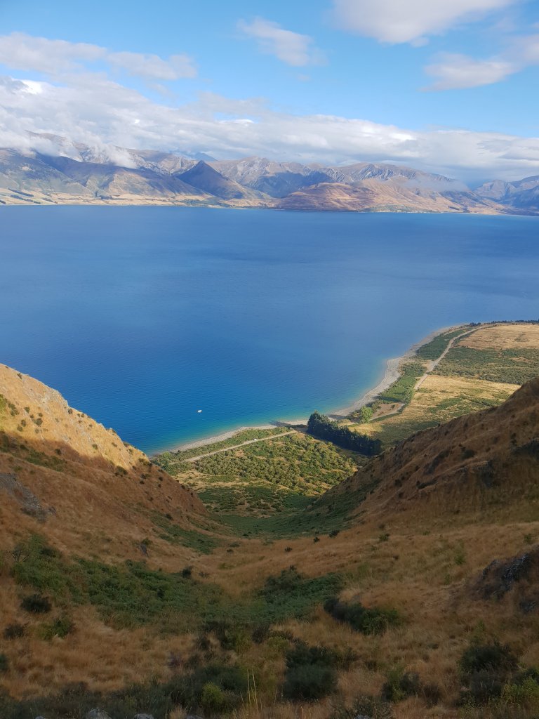 Eventually, the mist started to lift a little and we decided to start the short but steep walk down to Lake Hawea.