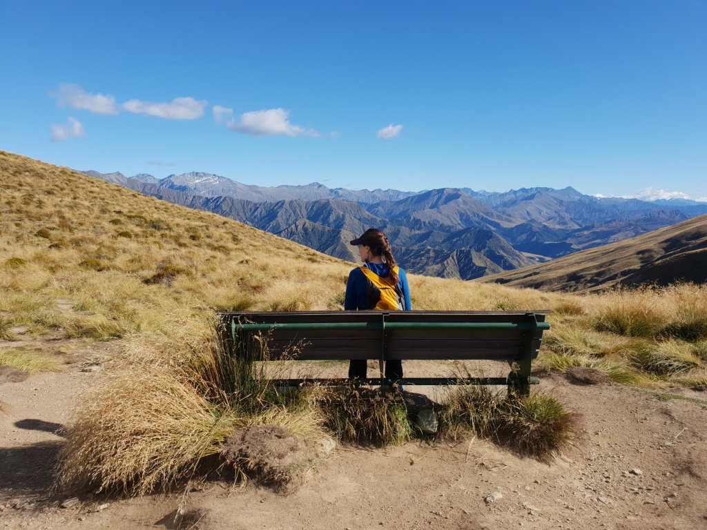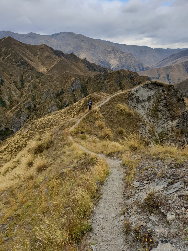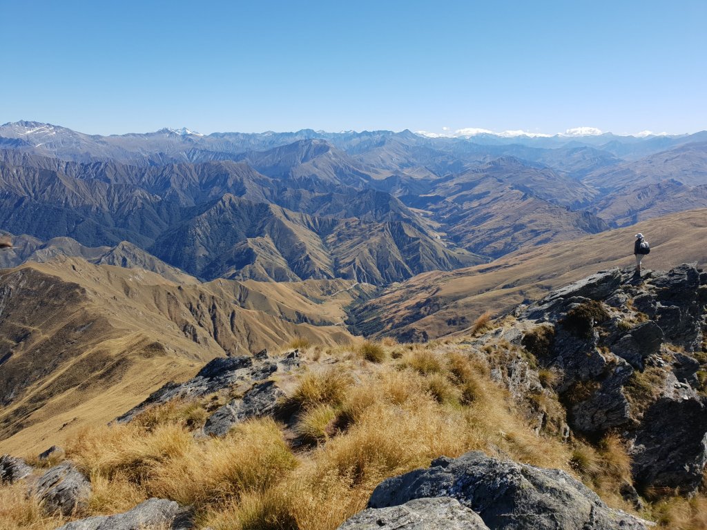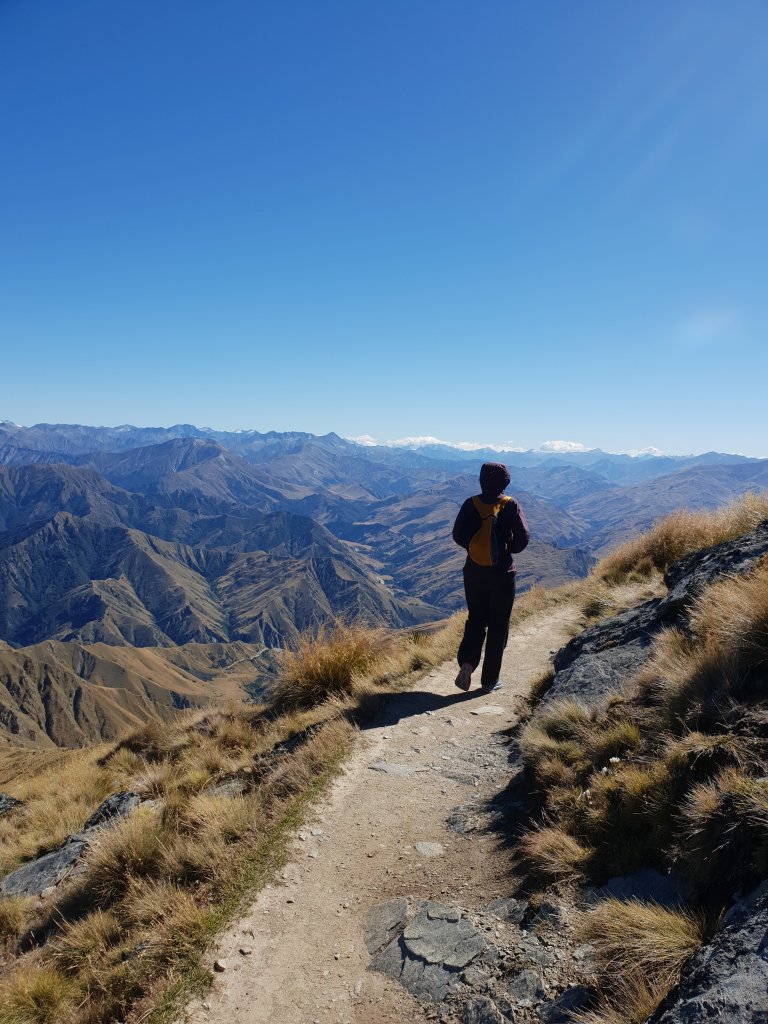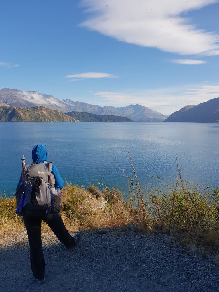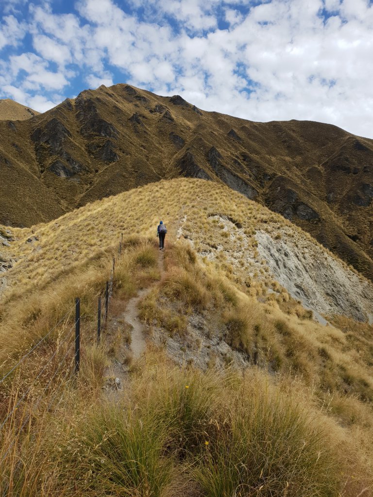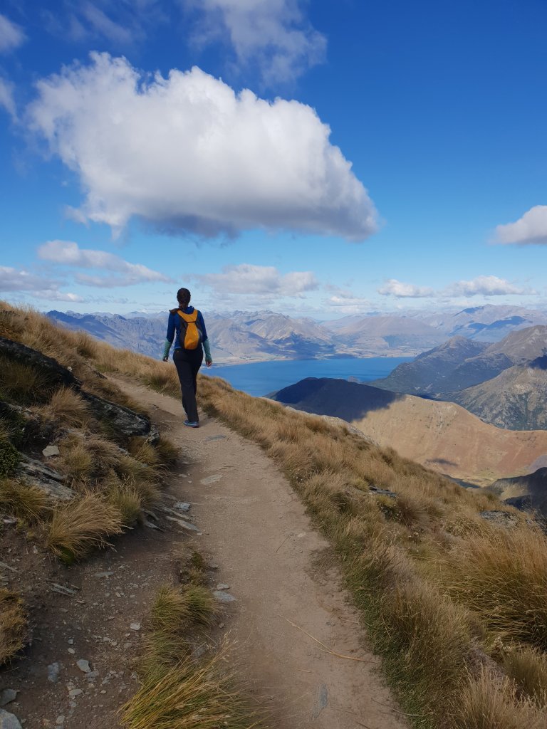 The trail was narrow and a little overgrown in parts but when we could take our eyes off our feet, pausing for a breather, the views were more than worth the hard work of the climb. Behind us we had views back over lake Wanaka. Priceless vistas.
