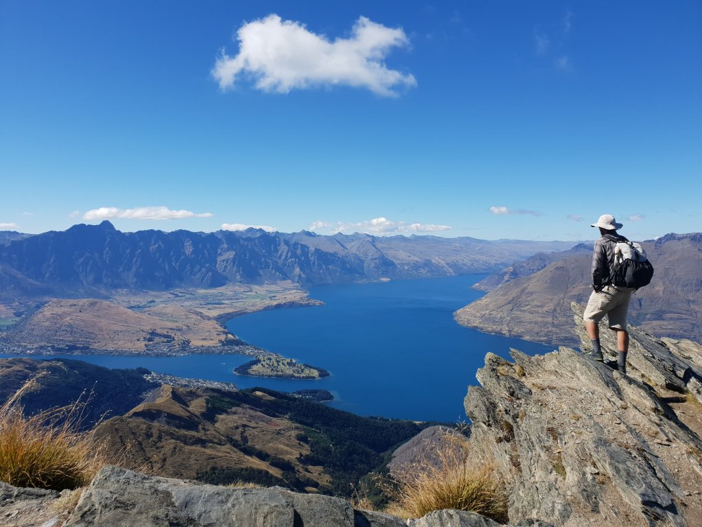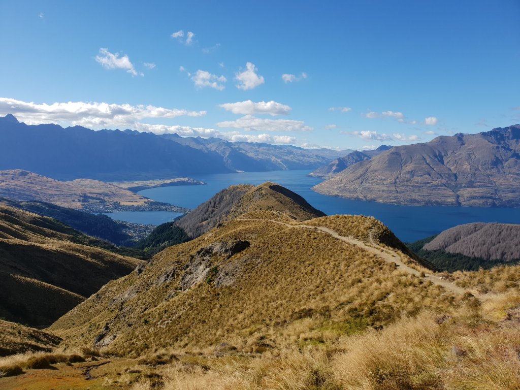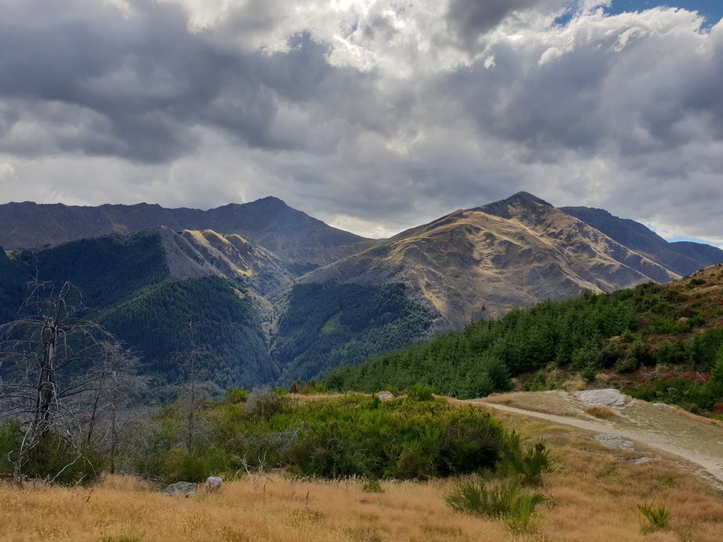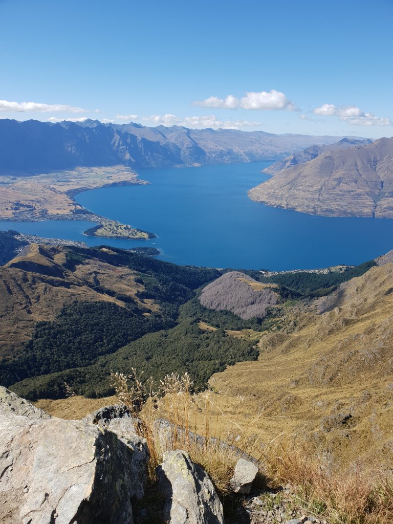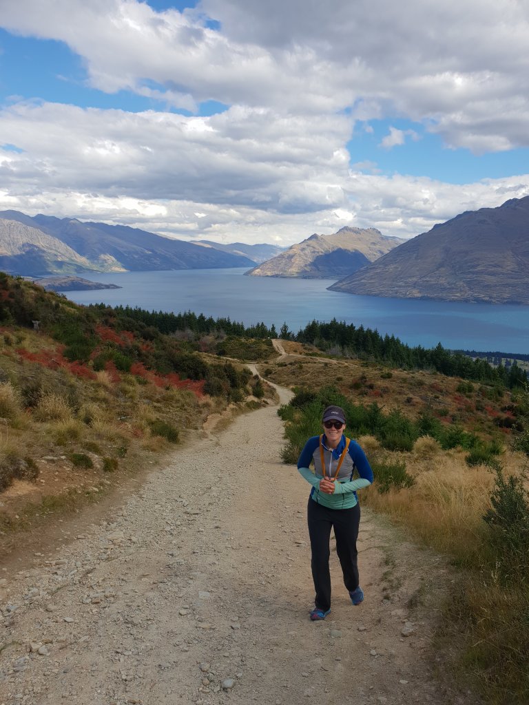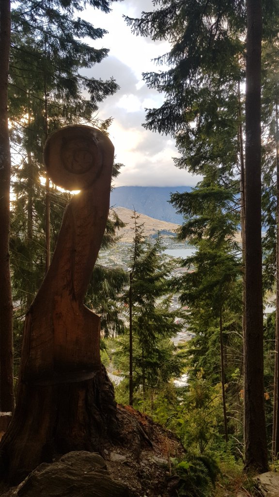 Most of the climbing of the walk was under a pine forest, we zig zagged our way up along numerous switch backs. It reminded me of the conical hill walk in Hanmer Springs. Once we popped out above the trees at the first lookout we had views from Frankston right over Queenstown and Lake Wakatipu.