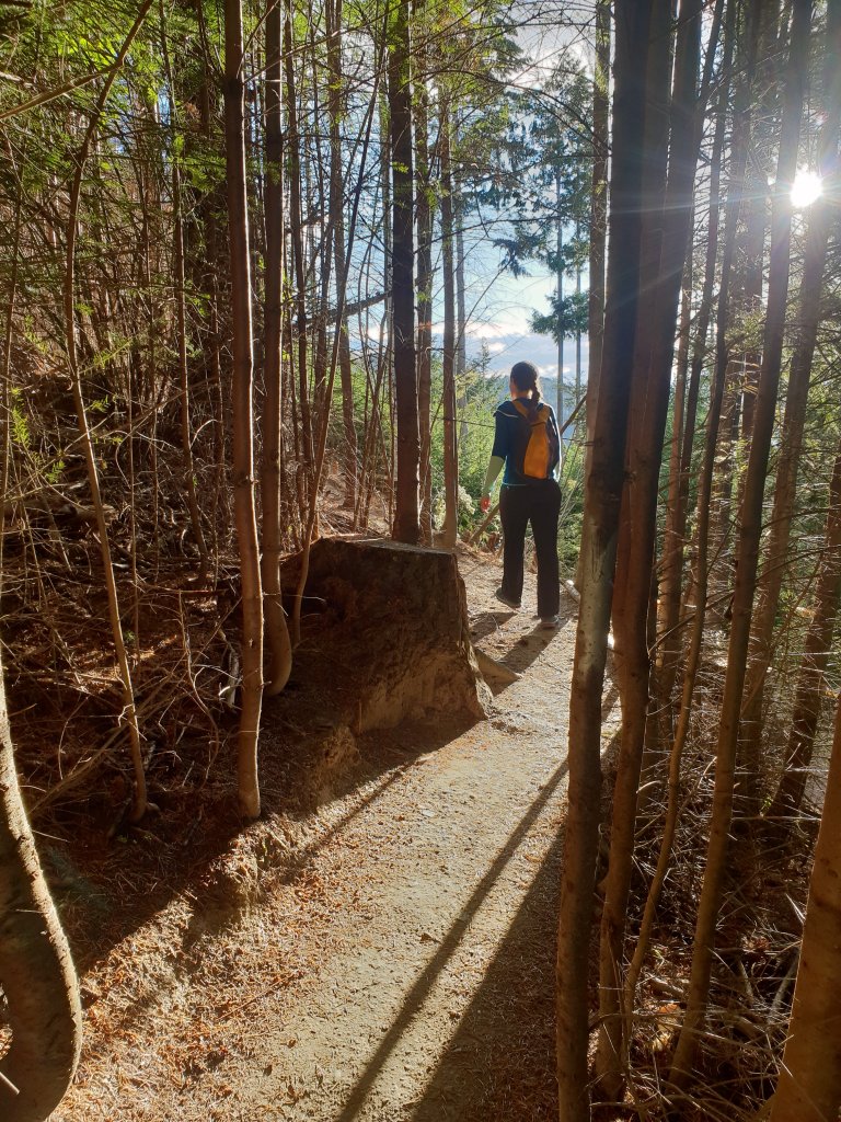 The views opened up when we reached the gondola. We had a short break and continued our climb up. The trail took us over a little bridge at the luge course which I ear marked in my brain for a little fun later in the day. From here we skirted around the side of the mountain and climbed steadily to the saddle. It was slow going but the gradient was gentle which made it easy to plod along onwards and upwards.
