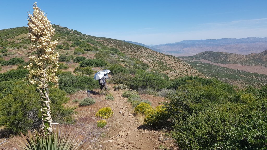 I was up and on the trail by 7.30am. I think yesterday’s pleasant weather lulled me into a false sense of security about the sun, so I wasn’t in any rush heading off. After 3 miles the sun was blaring and would continue to do so for the rest of the day. There was a 17 mile dry stretch ahead of us today so my bag was heavy with water. It was the toughest day on trail for me yet.