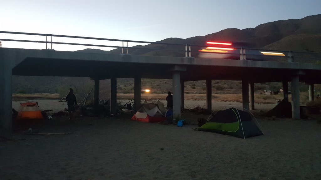 After helping out with the water we set up our tents under the bridge, it looked like a proper hobo village by the time the final group of hikers arrived! Being on sand with a breeze coming through I opted to leave the fly off the tent. I’m hoping the shelter of the bridge saves me from to much condensation overnight!