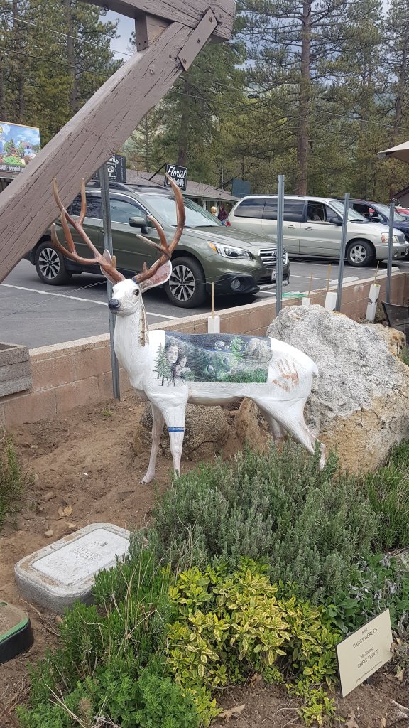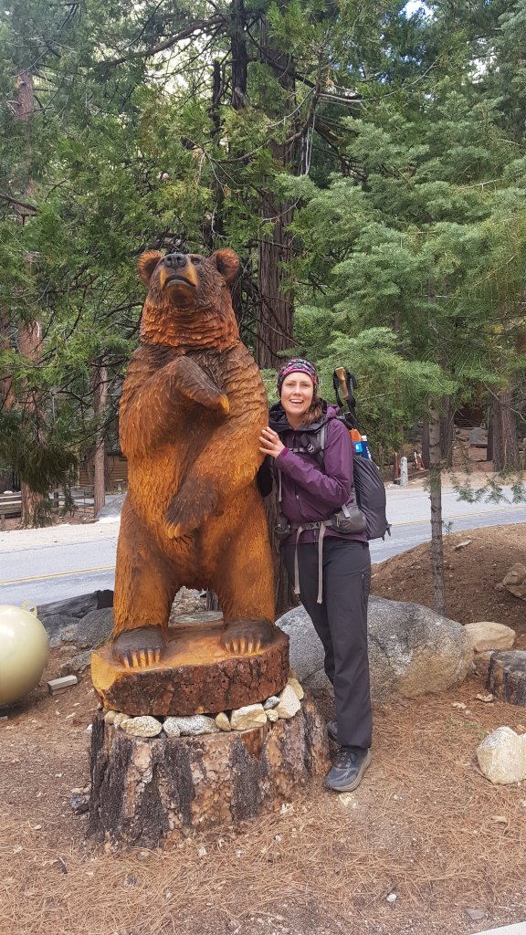 From the car park we had another couple of miles road walk to town. We walked by cute mountain cabins set within the pine trees. It was everything I imagined a US mountain holiday town to be, we even passed a life sized wood carving of a bear.