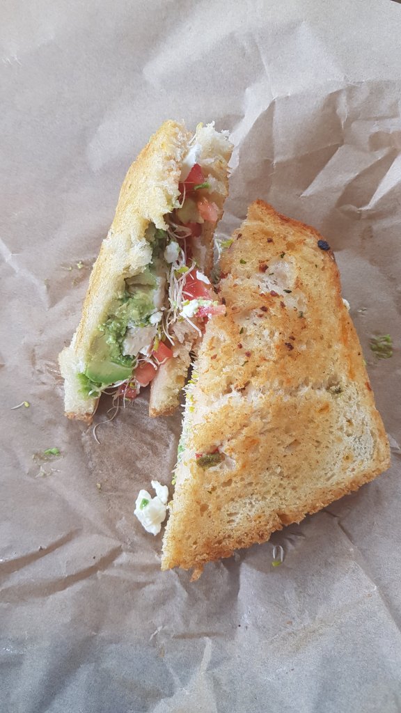 I had a very large, very delicious spinach, mushroom and cheese omelette with avo, hash and toast. It was ridiculously large but I took half of it with me, having the leftovers for lunch.