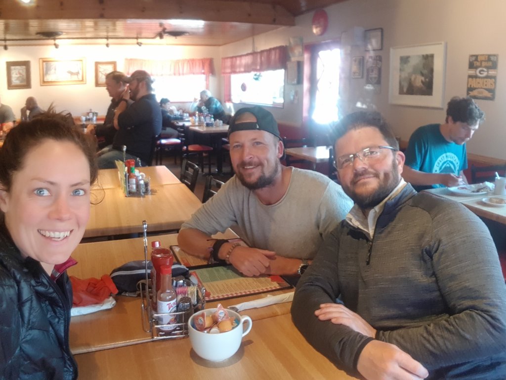 It was after 7am before I finally dragged myself out of bed, ready for coffee and breakfast. Graham had spent the night in a hotel rather than at the campground so Jeff and I wandered into town for breaky. Just as Jeff was texting Graham, the man himself came walking into the campground with a coffee in each hand. He had organised to have breaky with his new crew but he came into town and had a coffee with us while we ate.