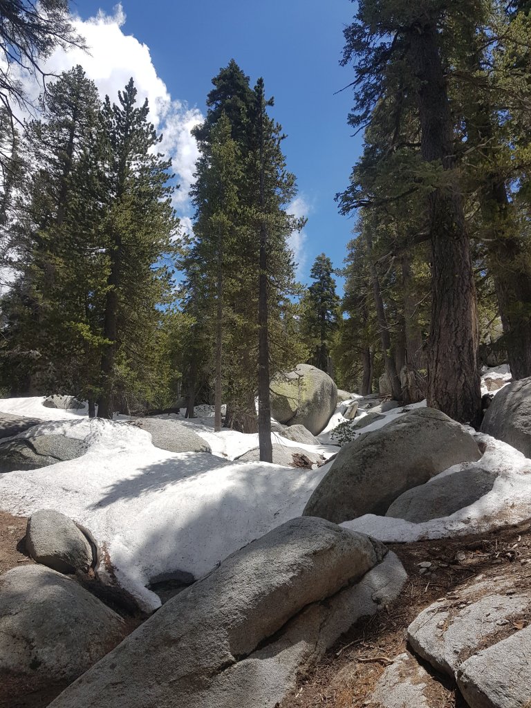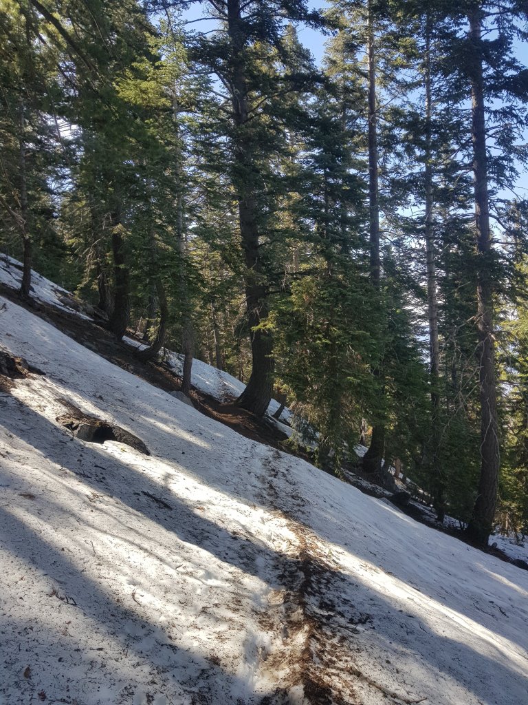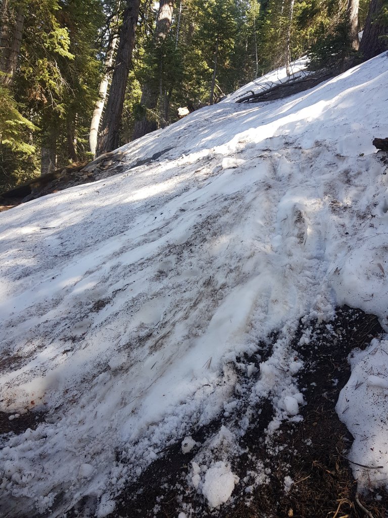 The challenge for the day would be Fuller Ridge, I had heard about it being one of the more difficult parts of this section, holding the most amount of snow remaining on the mountain. Given the large amount of snow melt over the past few weeks it was no longer necessary to wear microspikes to walk this section of trail but it was still very icy and very slippery when I came to cross it. I was glad to have my trekking poles but still managed to slip over twice. It would be my first and second fall of the trail. It is good experience for me, learning how to walk on snow. I learnt that it is as hard as concrete and as sharp as jagged glass when you fall on it.
