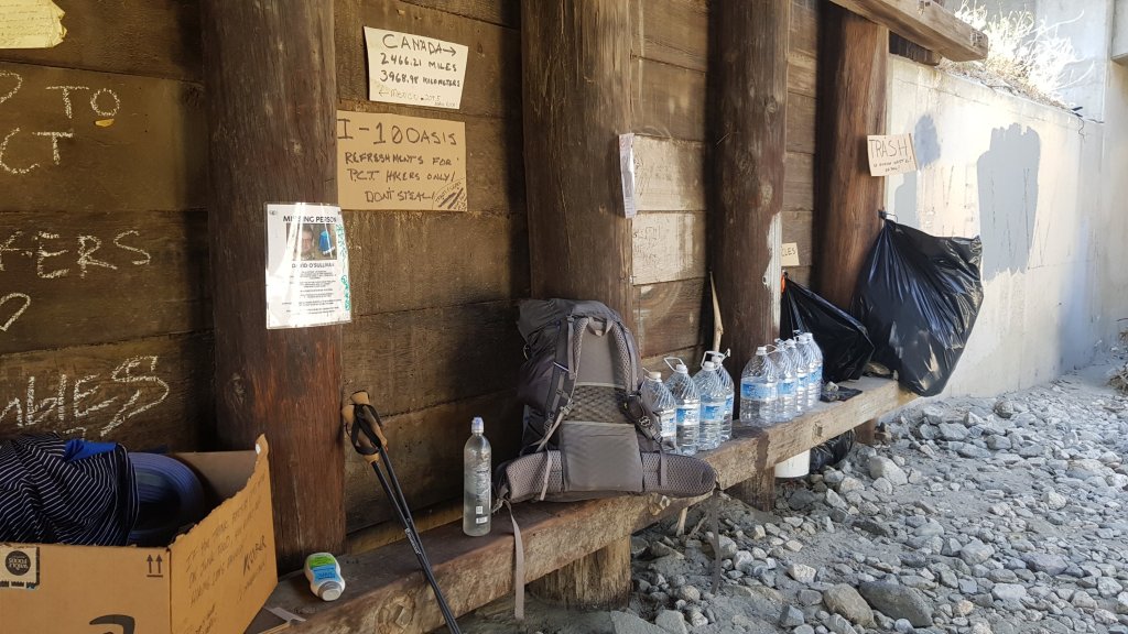 The trail intersects with a major road and rail artery and crosses by way of an underpass. Here a generous local has been leaving water for hikers who may get caught short. From the bridge other hikers were trying to hitch into town to get to a burger shop but after only 2 days on trail and all the sugar from the trail magic I was keen to keep moving.