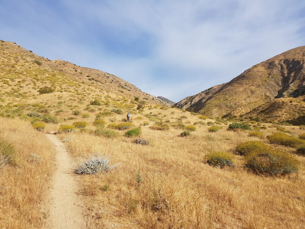 The trail dropped back down once again and I spent the afternoon crisscrossing back and forth over mission creek. The trail was washed out in parts due to flooding earlier in the year. At times it made the trail hard to find. There were several occasions where I frustratingly followed wrong footsteps and ended trudging up the river bed for unnecessary stretches of time. Despite the washout I was extremely happy to have such close access to water. It made it a much easier afternoon of hiking, not needing to carry so much on me and being able to cool off whenever I started to feel the heat.