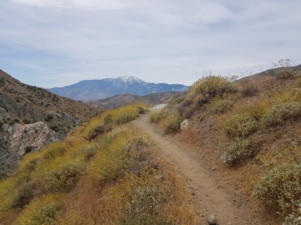 After crossing Whitewater it was back up into the mountains for a short but spectacular stretch. The trail was lined with plants which reminded me of wattle bushes. For a minute I thought I was in the Australian outback with the orange sand and bright yellow flowers.
