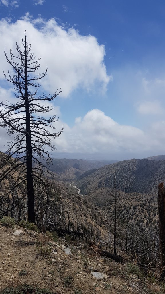I was off on the trail at around 7.30am and was worried the late start would mean a super hot day hiking in the sun but surprisingly the temperature had dropped somewhat from yesterday. There was a bit of cloud coverage and a breeze blowing as I departed the Wind farm and climbed my way up to the San Gorgonio Wilderness. I was surrounded by picturesque views in all directions, San Jacinto behind me and San Gorgonio in front of me.