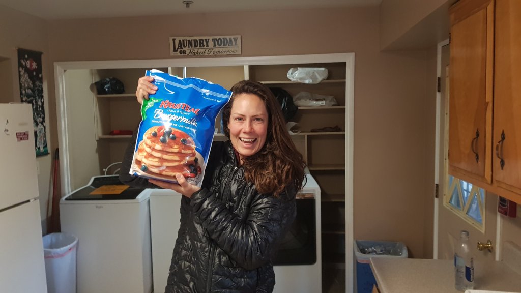 It was nice to wake up in a big warm comfy bed knowing I had no need to rush out on trail and nowhere to be. That said, I was up at 6.30am and first order of the day was breakfast! The Big Bear Hostel looks after hikers incredibly well and have a big bag of pancake mix ready to go in the kitchen along with some giant bottles of syrup and coffee. I whipped up a batch of pancakes, one of the other hostel guests put on a pot of coffee and Graham joined us for breakfast before he headed back out on trail. The pancakes were surprisingly delicious. I even found a free banana in the fruit bowl to add to my pancakes. It was delish!