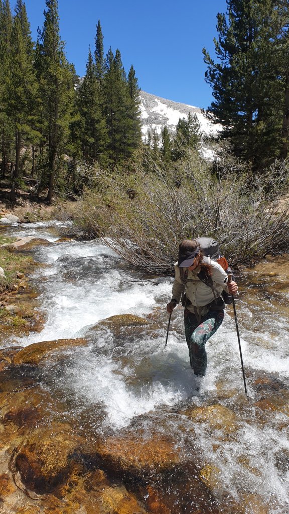 We had another lazy morning today while I’m still acclimatising to the altitude, but it was undoubtedly a better night’s sleep for me compared to my first night on trail. The water levels in nearby Rock Creek didn’t appear to have dropped much overnight, so we stuck with the original plan of crossing directly opposite the campground rather than mucking around trying to find an alternate crossing point. In any case, the depth or speed of the water did not look overly dangerous from the banks.