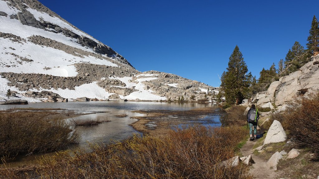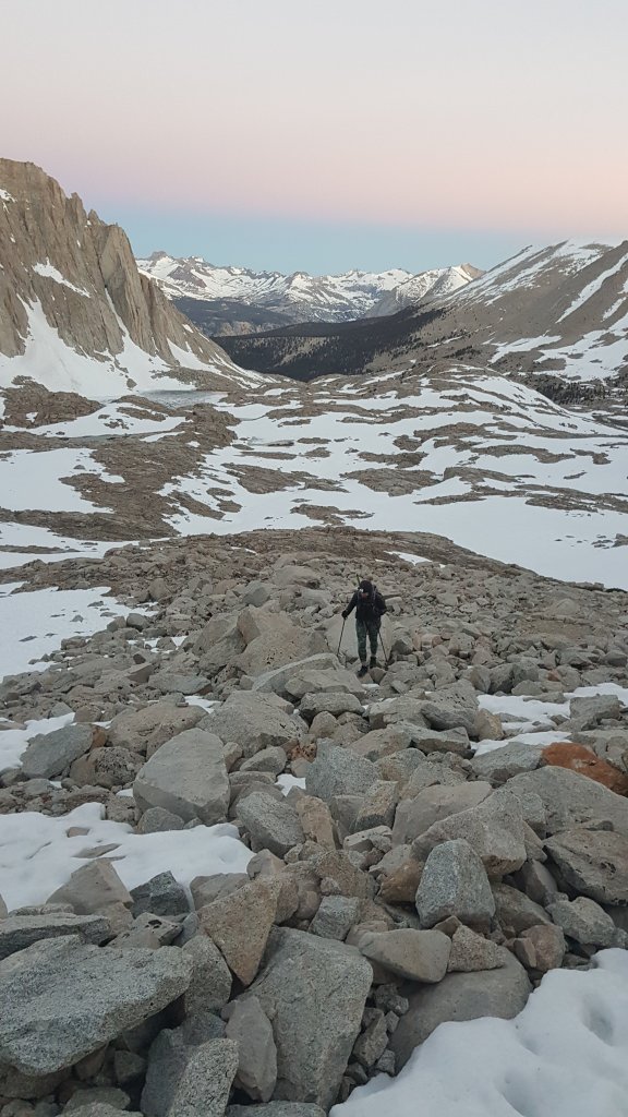 After another shin deep creek crossing, we had our first run in with mosquitoes on our way to the Mt Whitney tent site for PCT’ers. With this year being a high snow year though and the melt underway, the worst is definitely still yet to come as the mosquitoes breed in every bit of stagnant water they can find.