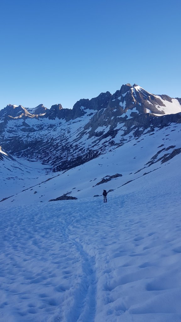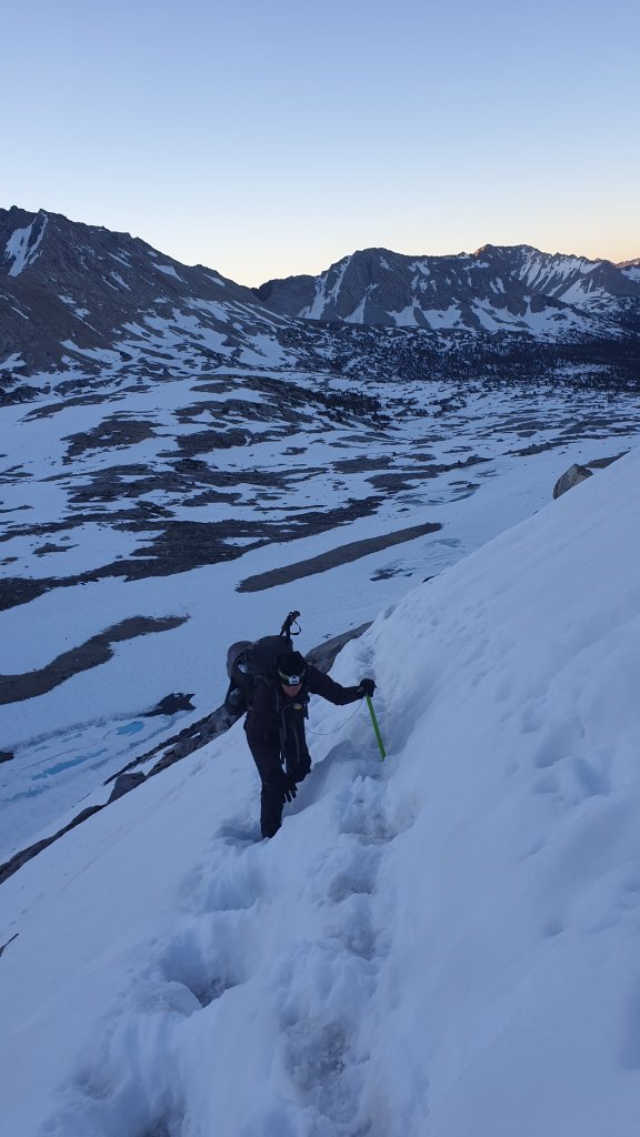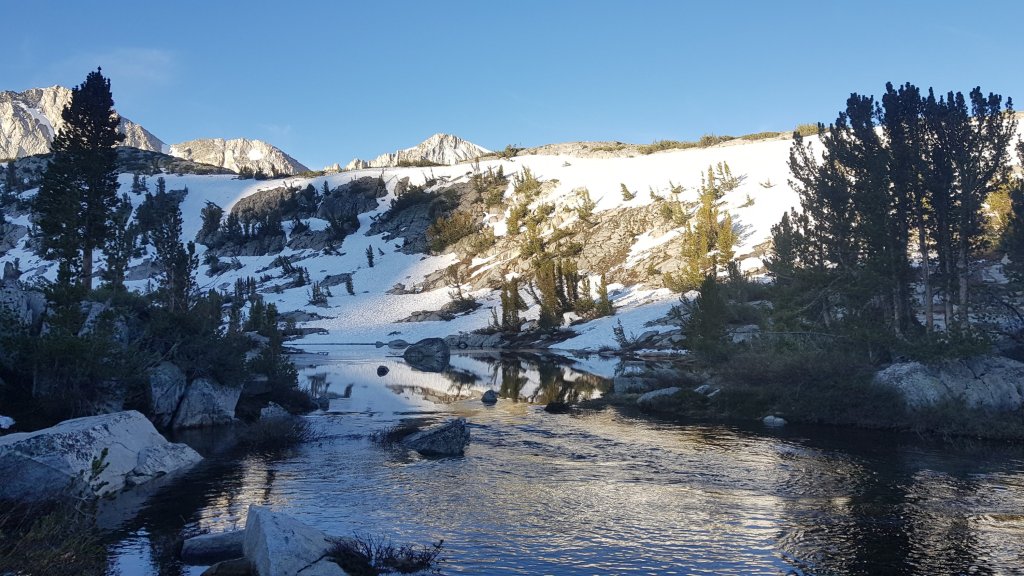 The snow was patchy and the morning light was stunning as we made our way towards Bishop Pass, passing a number of beautiful lakes on the way.
